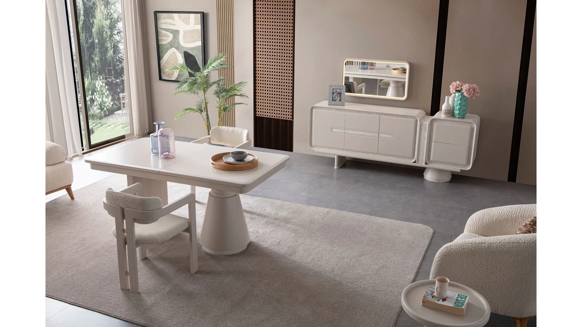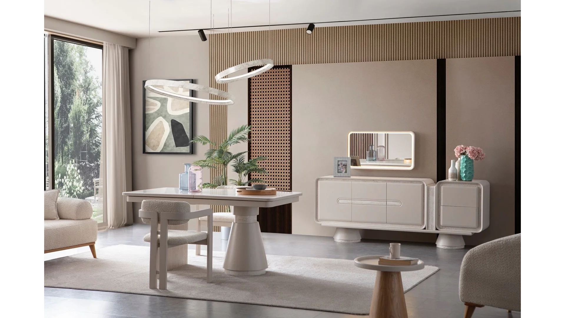 Occo Home Mobilya'nın zarif tasarımı ve kaliteli malzemeleriyle ürettiği Aden Yemek Odası, şıklığı ve konforu bir arada sunar. Yemek odanızı baştan aşağıya yenilemek istiyorsanız, Aden Yemek Odası tam size göre!