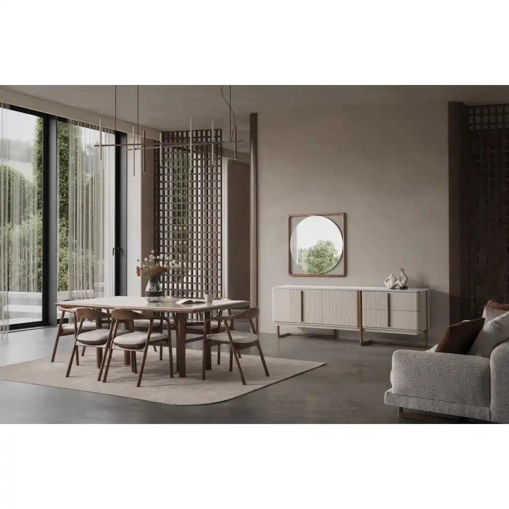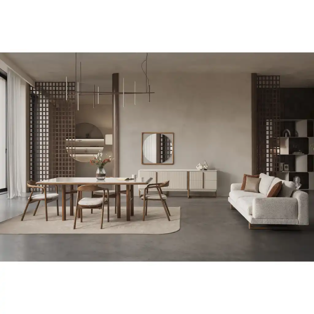 İnegöl Mobilya'nın şıklık ve kaliteyi buluşturan Aksa Yemek Takımı, yemek odalarınızı modern bir görünüme kavuşturacak. Occo Home Mobilya markasıyla tasarlanan bu yemek takımı, zamansız tasarımı ve dayanıklı malzemesi ile dikkat çekiyor.