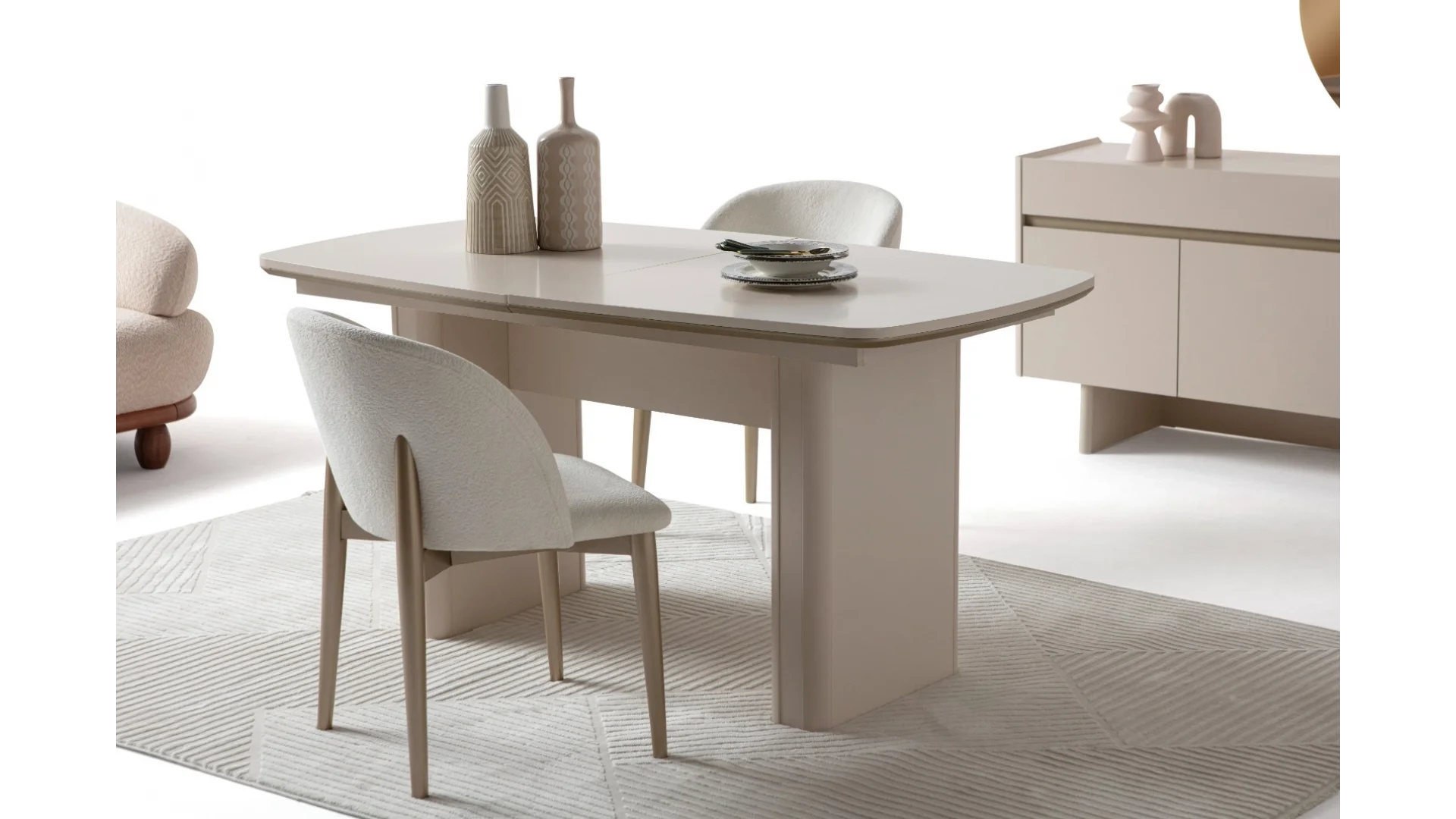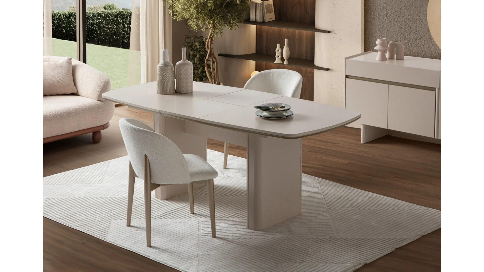 - Masa ve sandalyeler harmonik bir görünüm oluşturacak şekilde tasarlanmıştır.