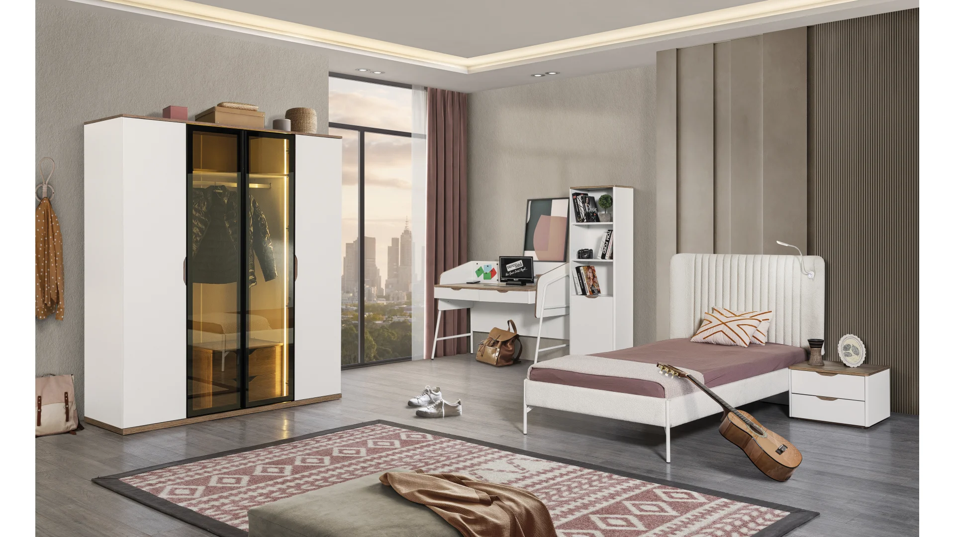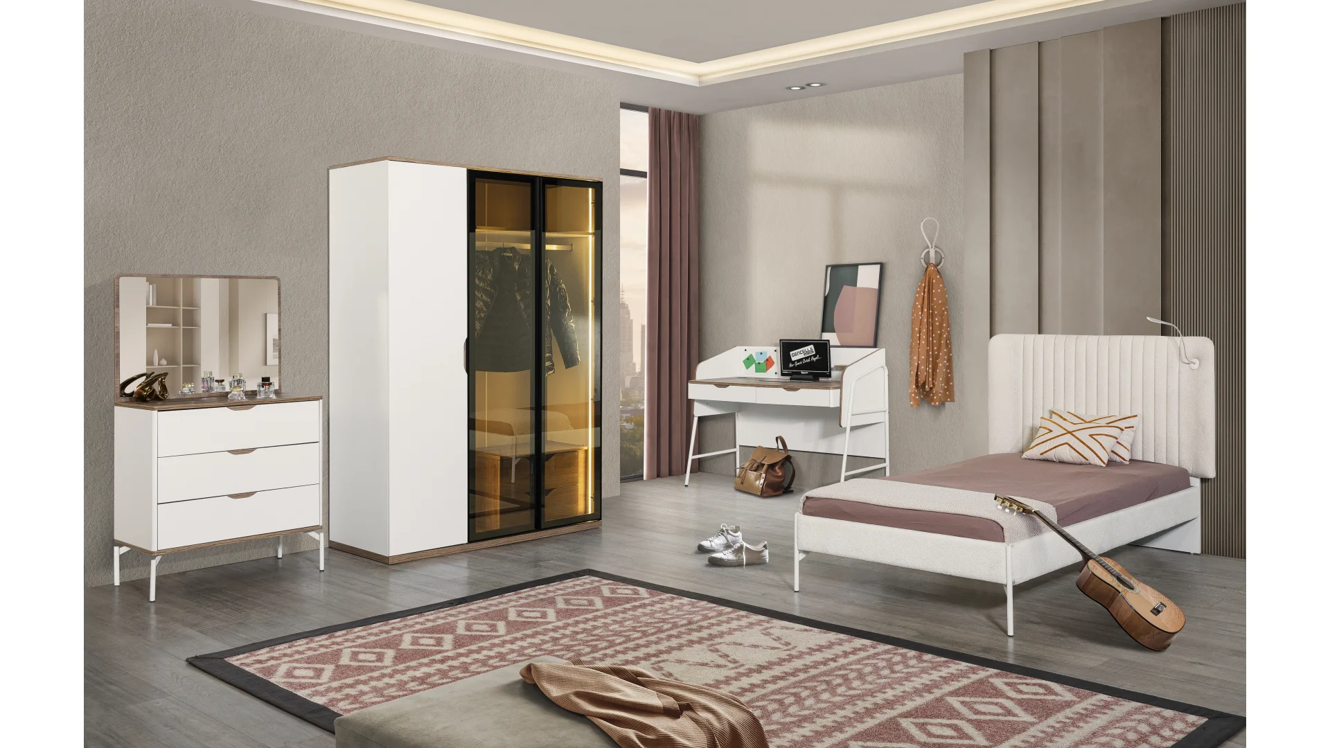 İnegöl Mobilya iş birliğiyle tasarlanan Angel Genç Odası Takımı, gençlerin tarzını yansıtan ve ihtiyaçlarını karşılayan bir seçenektir. Kaliteli ve şık tasarımıyla genç odalarınıza modern bir dokunuş yapabilirsiniz.