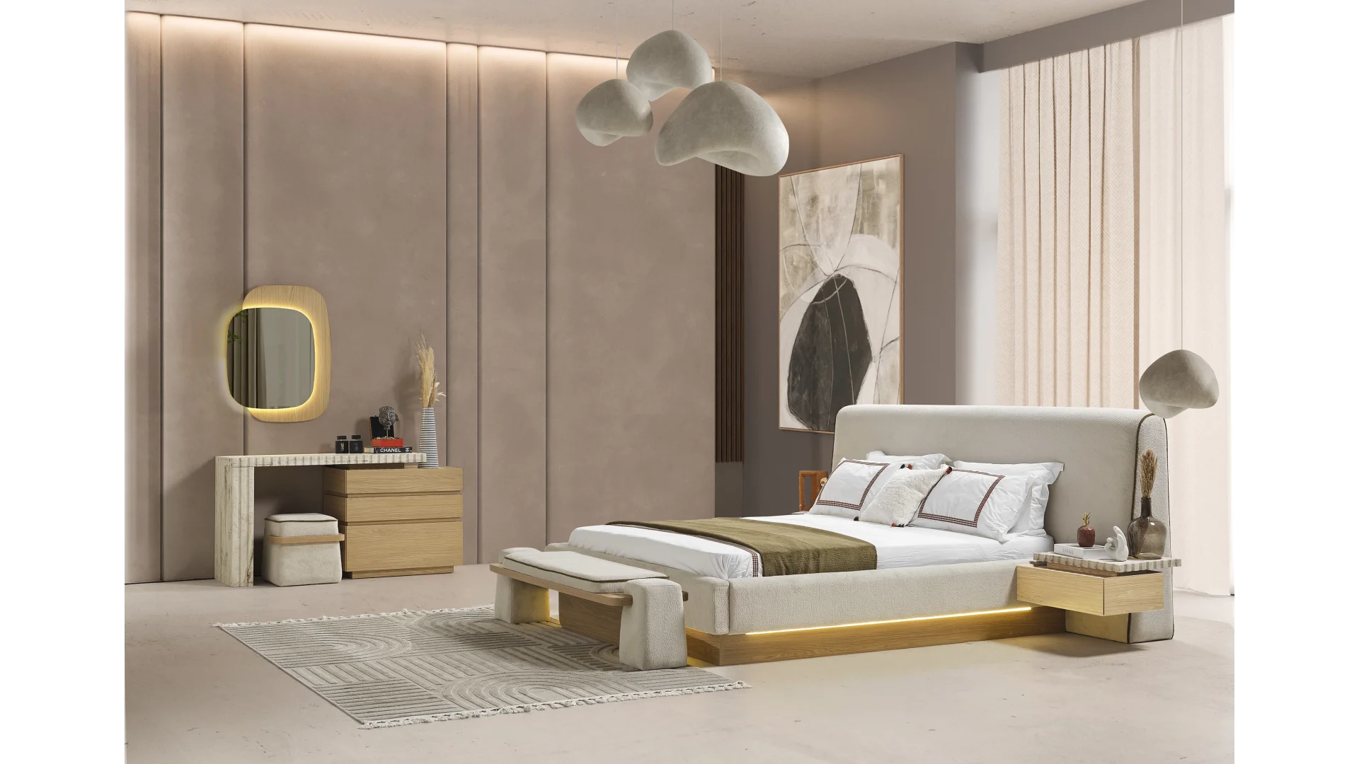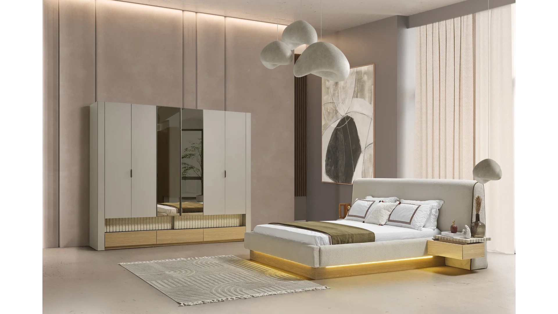 Occo Home tarafından tasarlanan İnegöl Mobilya Angel Yatak Odası, şıklık ve konforu bir araya getiriyor. Modern tasarımı ile yatak odanıza ferah bir hava katacak.