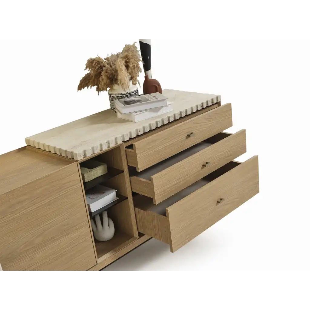- Beyaz ve doğal ahşap renk kombinasyonu ile her dekorasyona uyum sağlar.