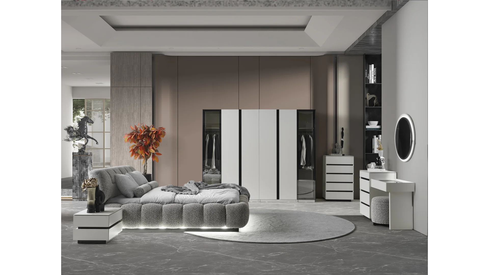 Occo Home'un İnegöl Mobilya koleksiyonundan İnegöl Mobilya Ashley Yatak Odası, şıklığı ve zarafetiyle göz kamaştırıyor. Modern tasarımı ve kaliteli malzemeleriyle yatak odanıza ferah bir hava katacak.