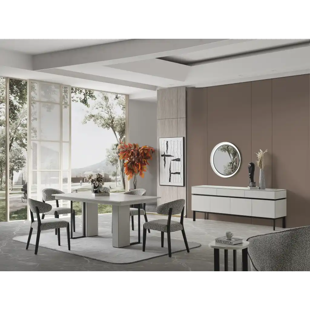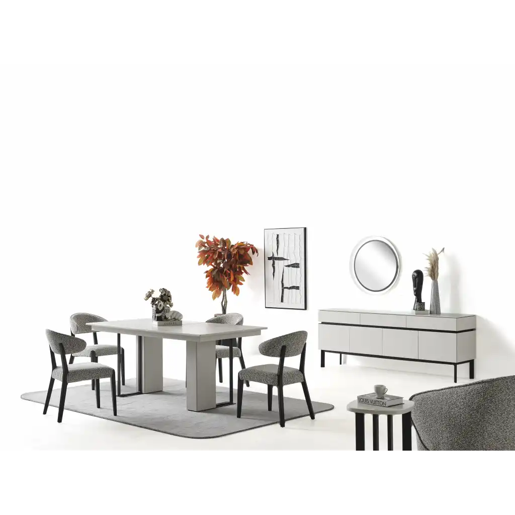 İnegöl Mobilya Ashley Yemek Odası, hem estetik görünümü hem de kullanışlı yapısıyla evinize değer katacak bir tercih olacaktır. Şimdi siz de Occo Home güvencesiyle şıklığı evinize taşıyabilirsiniz.