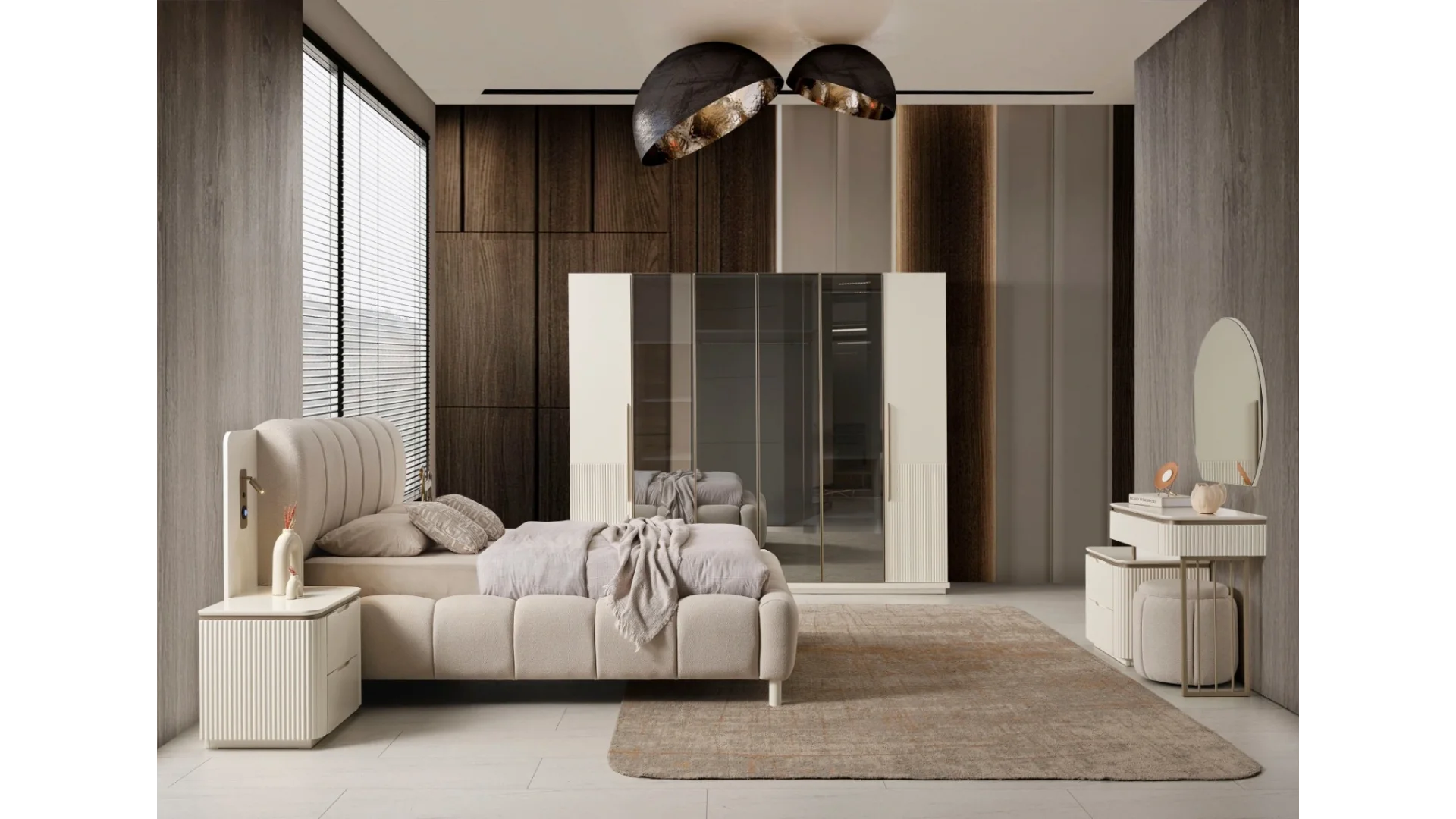 | Takım İçeriği | 1 adet Dolap,1 adet Karyola,1 adet Aynalı Şifonyer,2 adet Komodin |