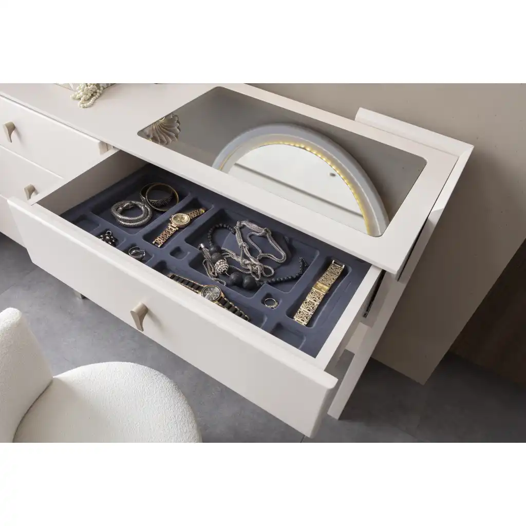 | Şifonyer | Gövde, Yonga Levha ile üretilmiştir. Ön yüzler, MDF malzeme üzeri lake boya ile üretilmiştir. |