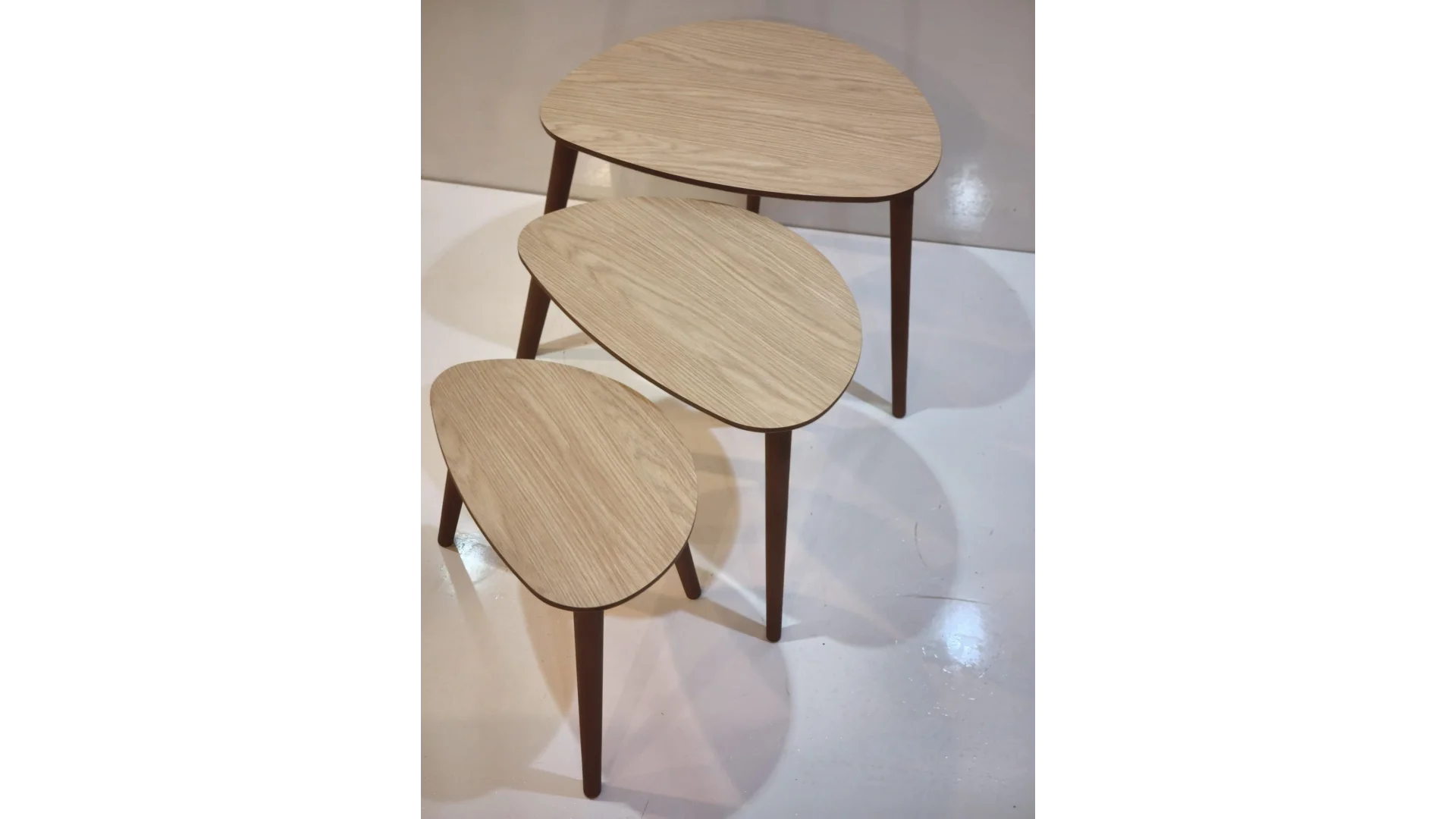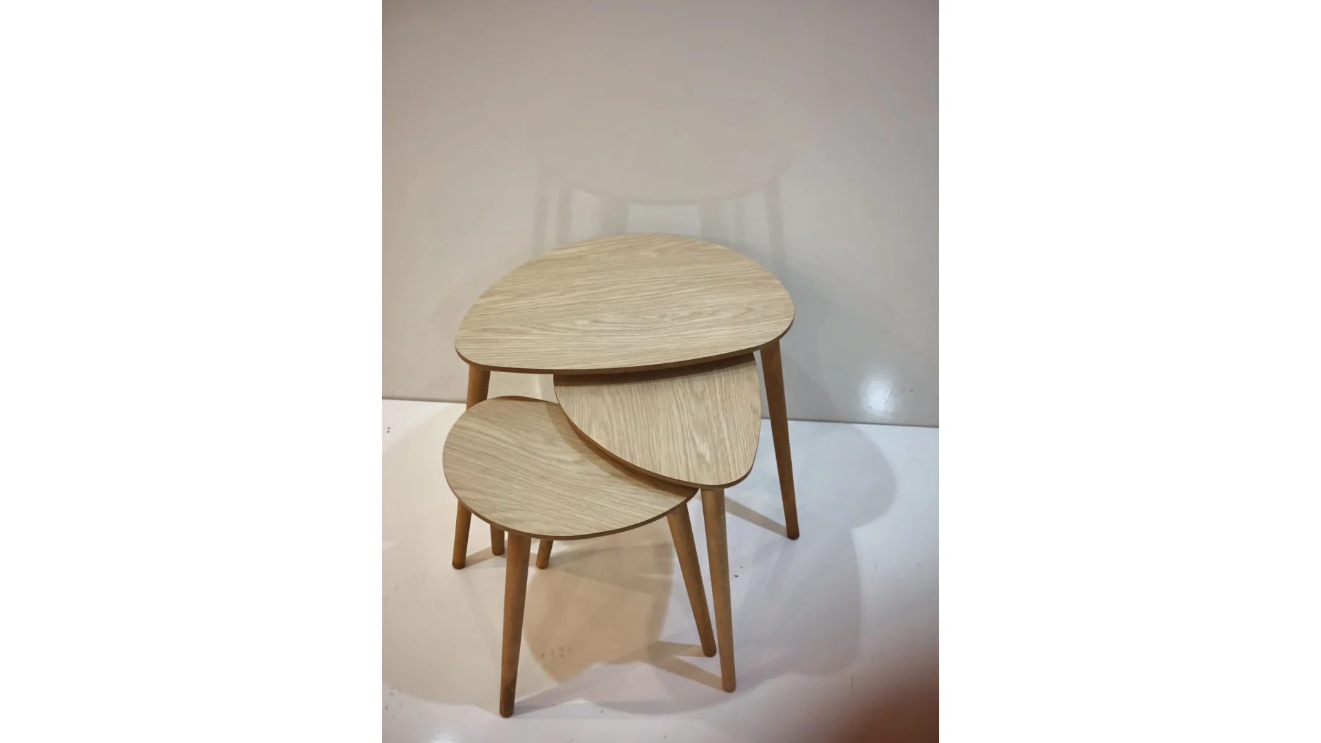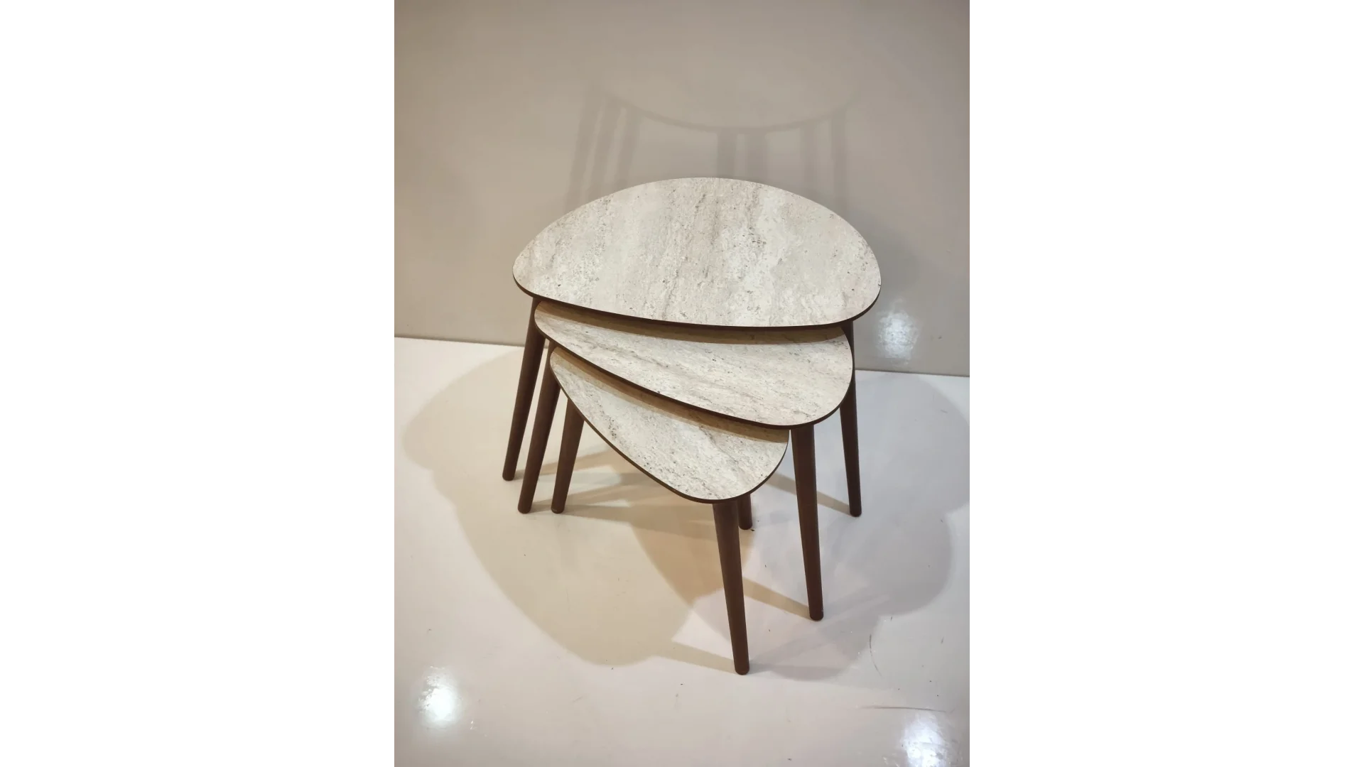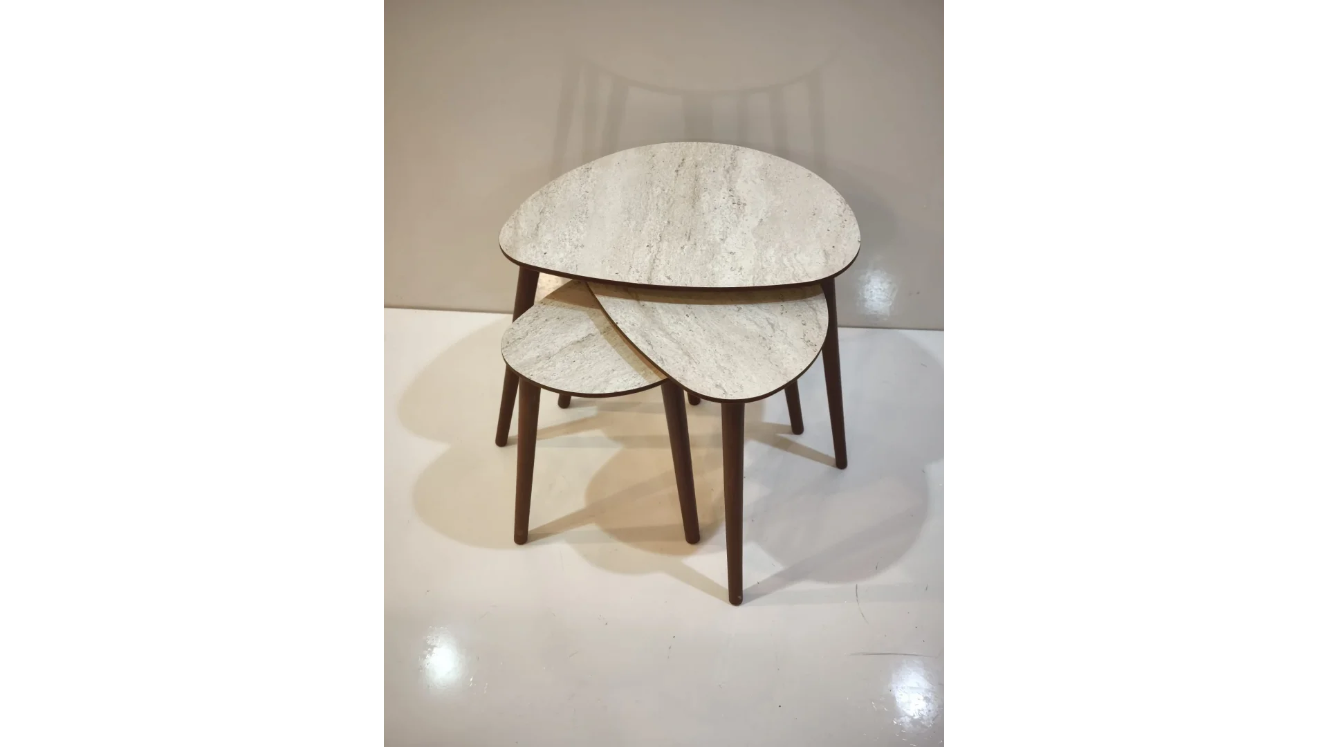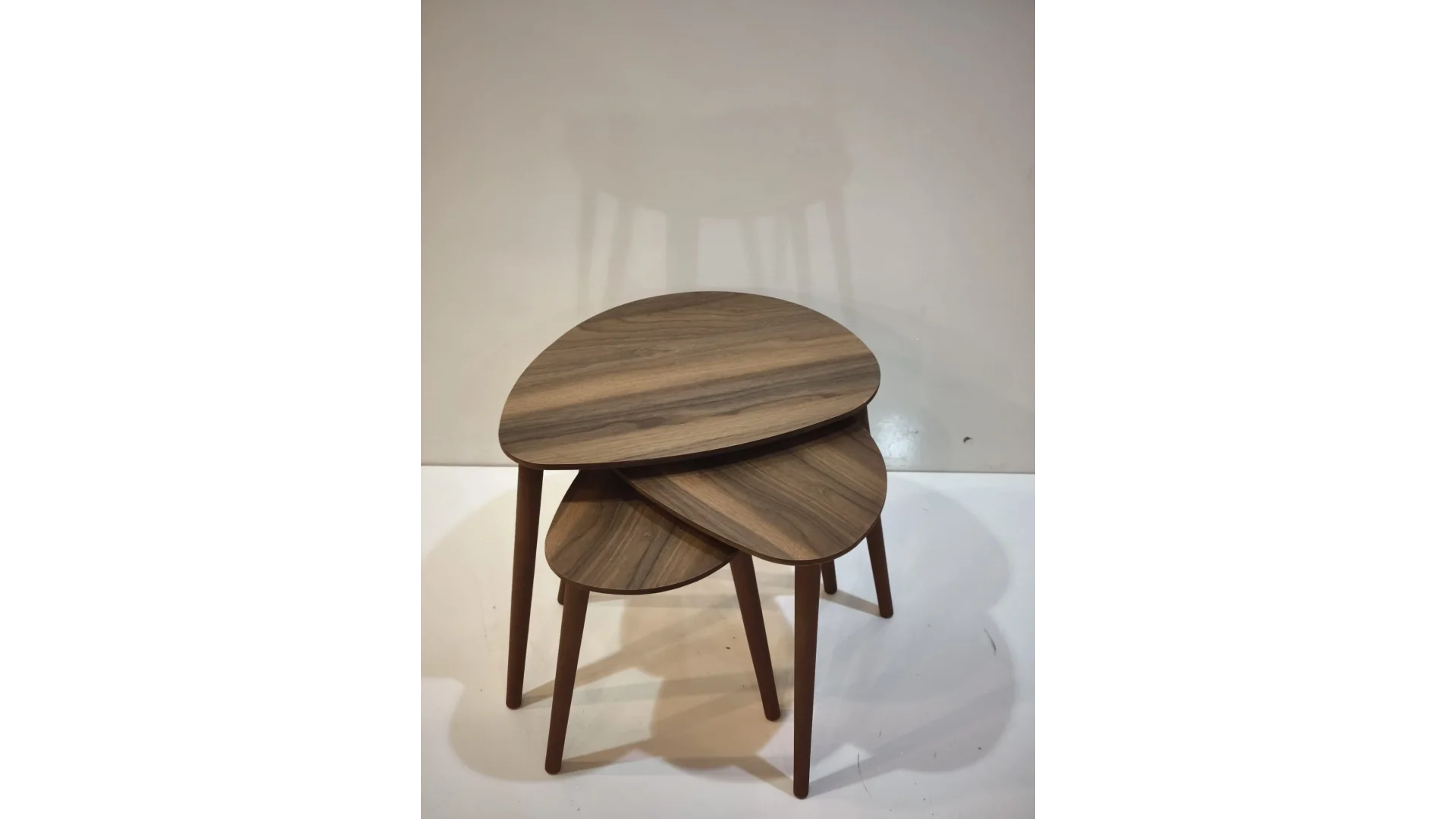 İnegöl Mobilya Damla Zigon Sehpa, damla formlu tablalarıyla modern ve zarif bir tasarıma sahip üçlü zigon sehpa setidir. Tamamen ahşap bazlı (MDF tabla ceviz kaplama, masif ahşap ayaklar) üretilir; metal içermez, alerji dostu ve rustik/salon dekorlarına uygundur. İç içe geçebilen yapısıyla yer tasarrufu sağlar, ikram servisi için idealdir.