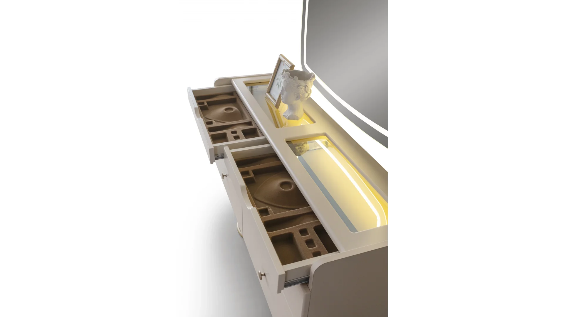 | Şifonyer | Gövde, Yonga Levha ile üretilmiştir. Ön yüzler, MDF malzeme üzeri lake boya ile üretilmiştir. |
