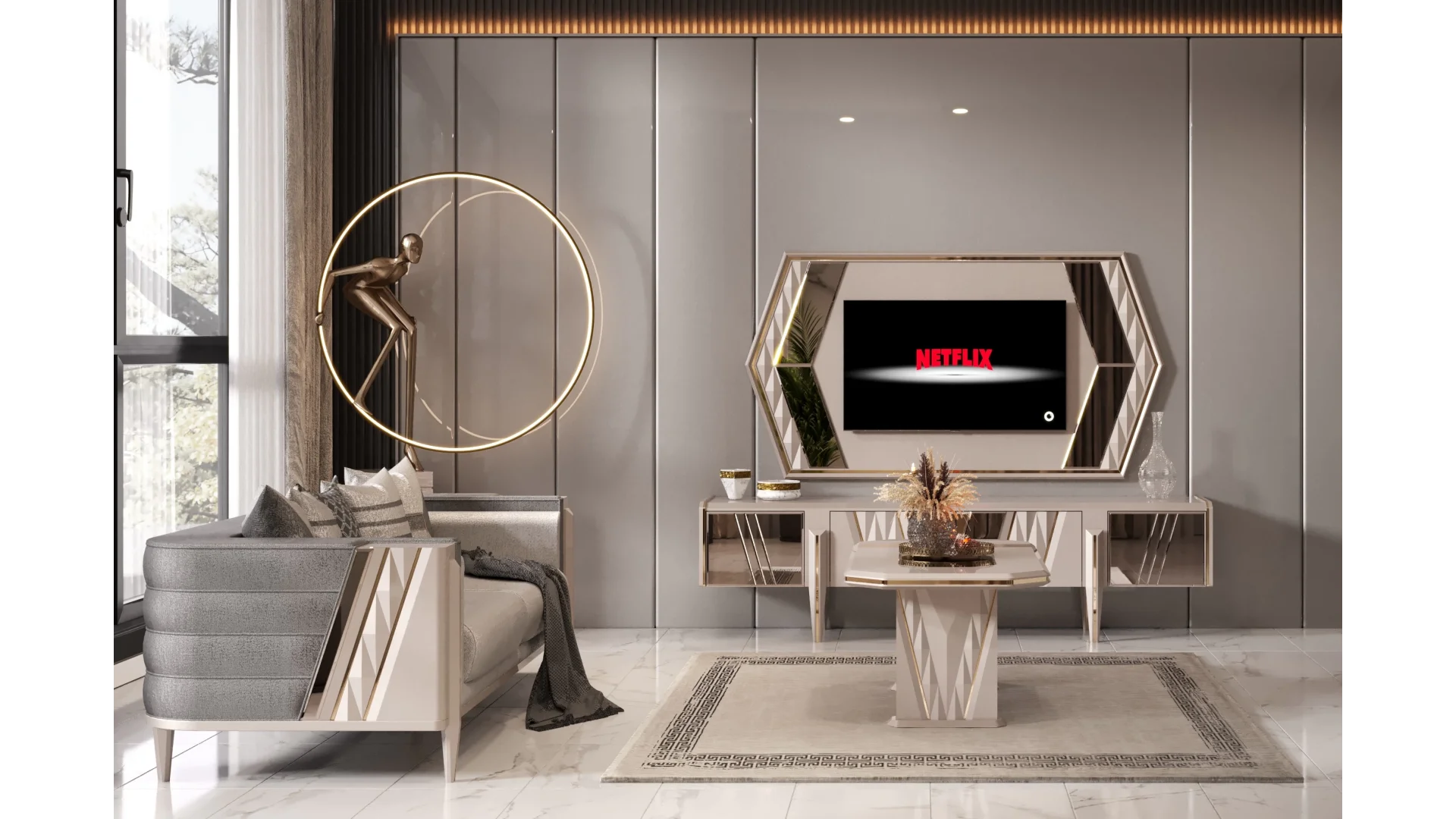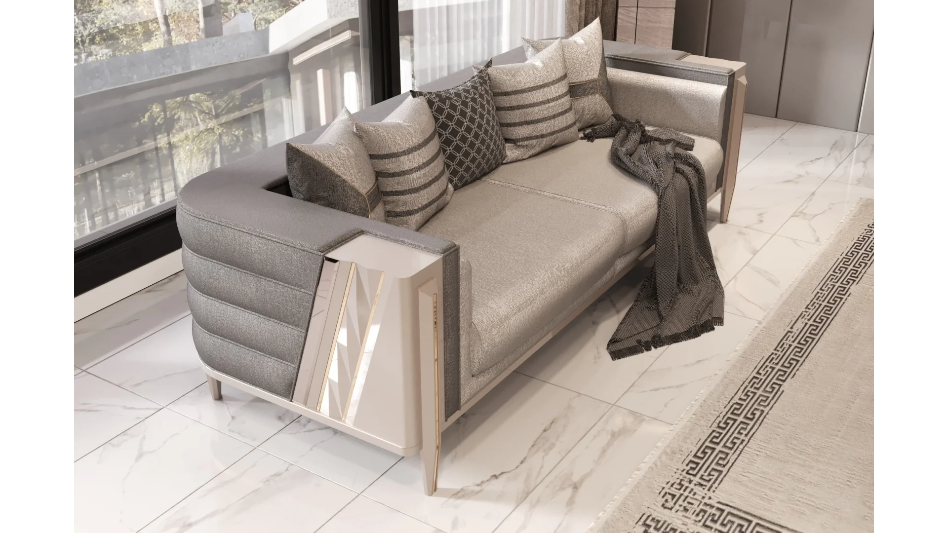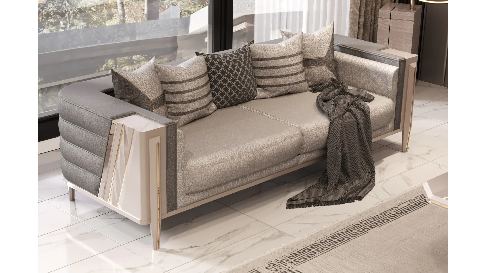Avangart tasarımı ile modern ve şık bir atmosfer yaratan bu koltuk takımı, kaliteli malzemelerden üretilmiştir. Rahat koltukları ve dayanıklı yapısıyla uzun yıllar konforlu bir kullanım sunar.