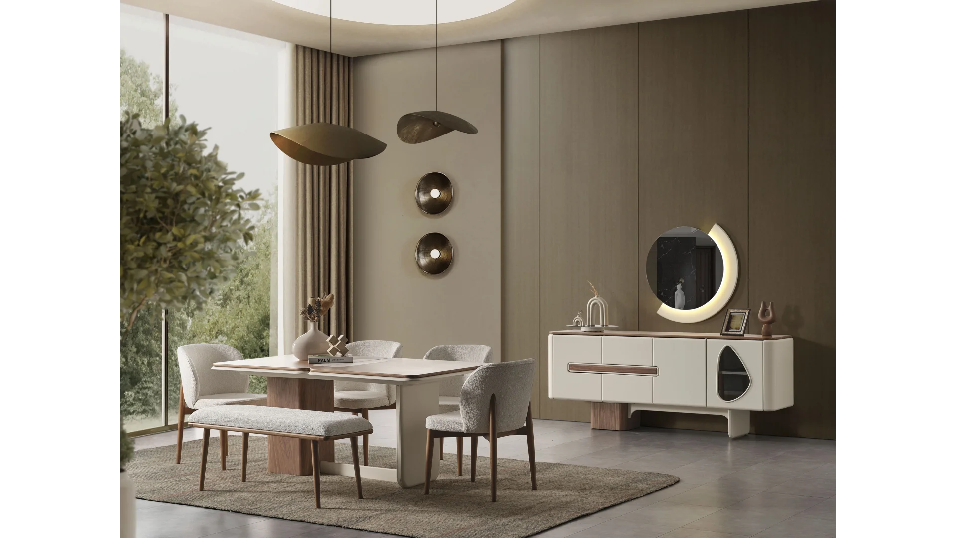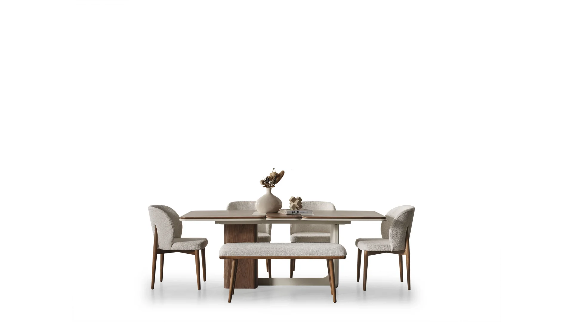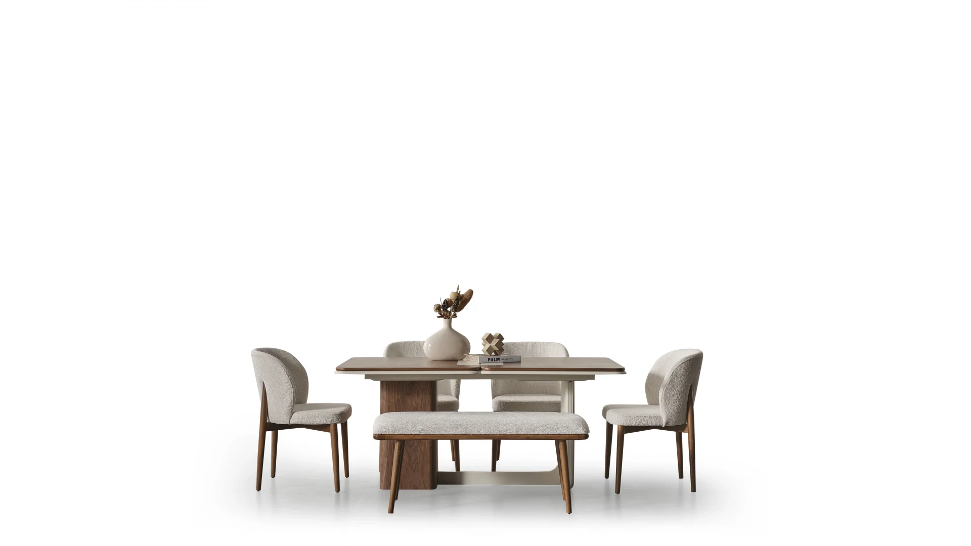 Masa ve sandalyeler bir arada sunulan bu takım, kullanışlılığı ve estetiği bir arada sunmaktadır. Yemek keyfinizi artıracak ergonomik tasarımı ile konforlu bir deneyim sunar.