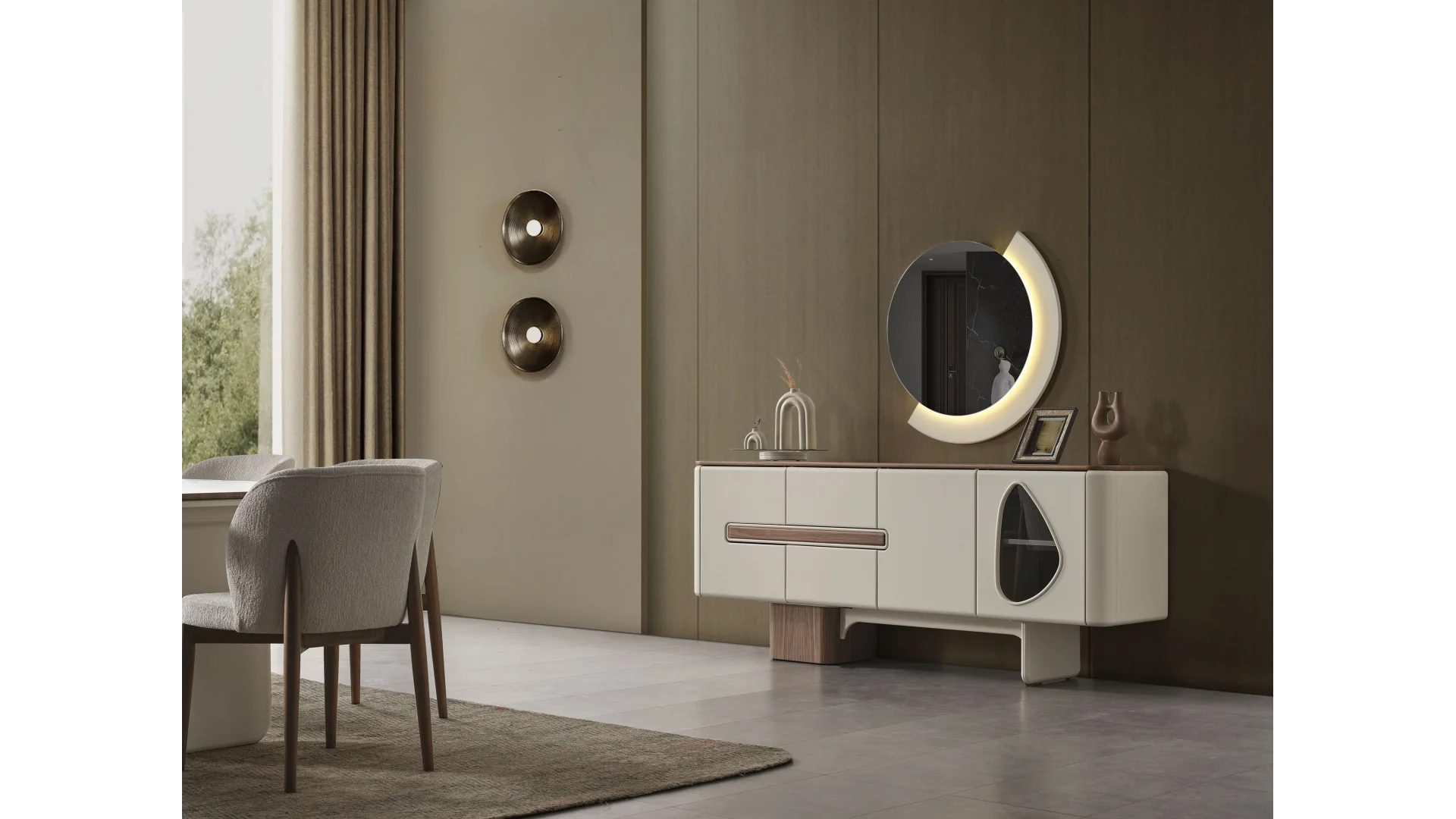 İnegöl Mobilya Enna Ekro Yemek Odası, yemek odanıza ferahlık ve şıklık katacak tasarımıyla öne çıkar. Beyaz rengin sadeliği ile modern bir atmosfer oluştururken, ahşap detaylar da sıcak bir hava yaratır.