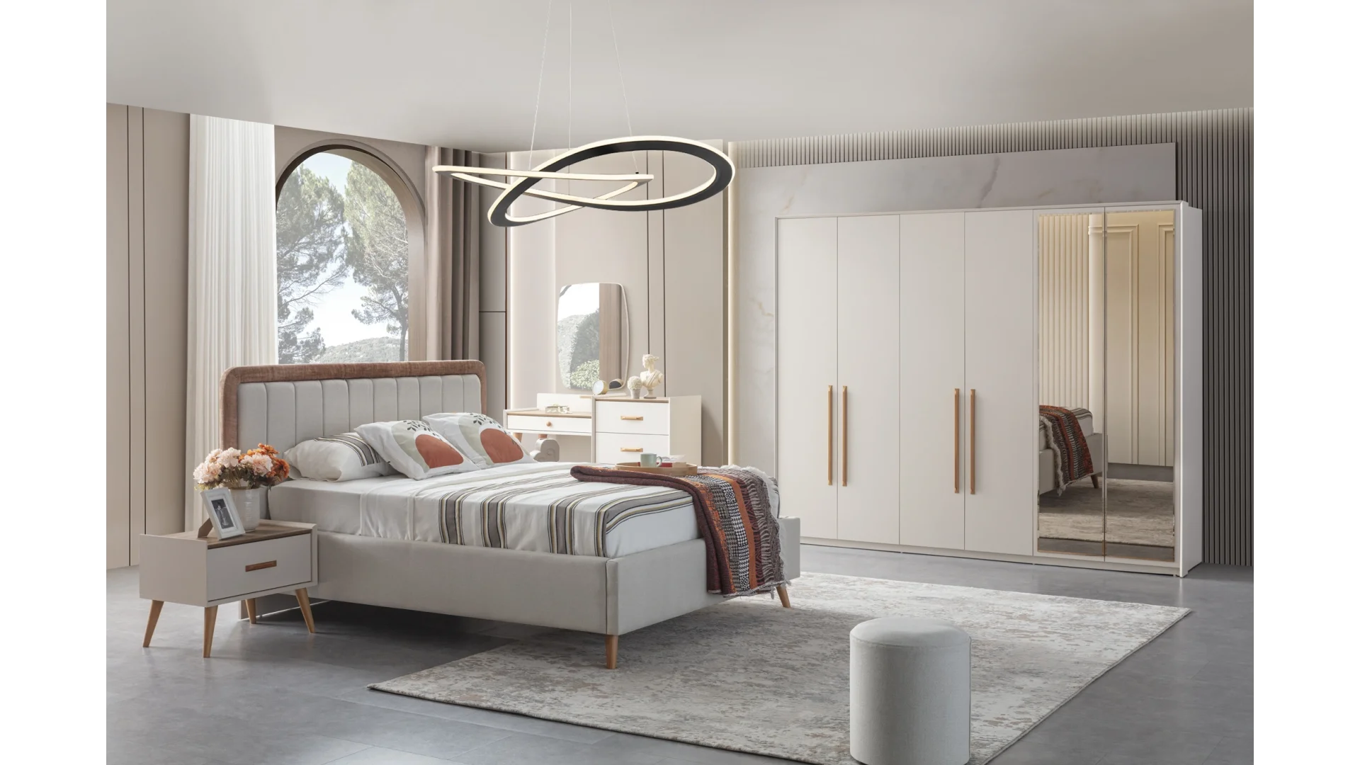 | Takım İçeriği | 1 adet Dolap,1 adet Karyola,1 adet Aynalı Şifonyer,2 adet Komodin |