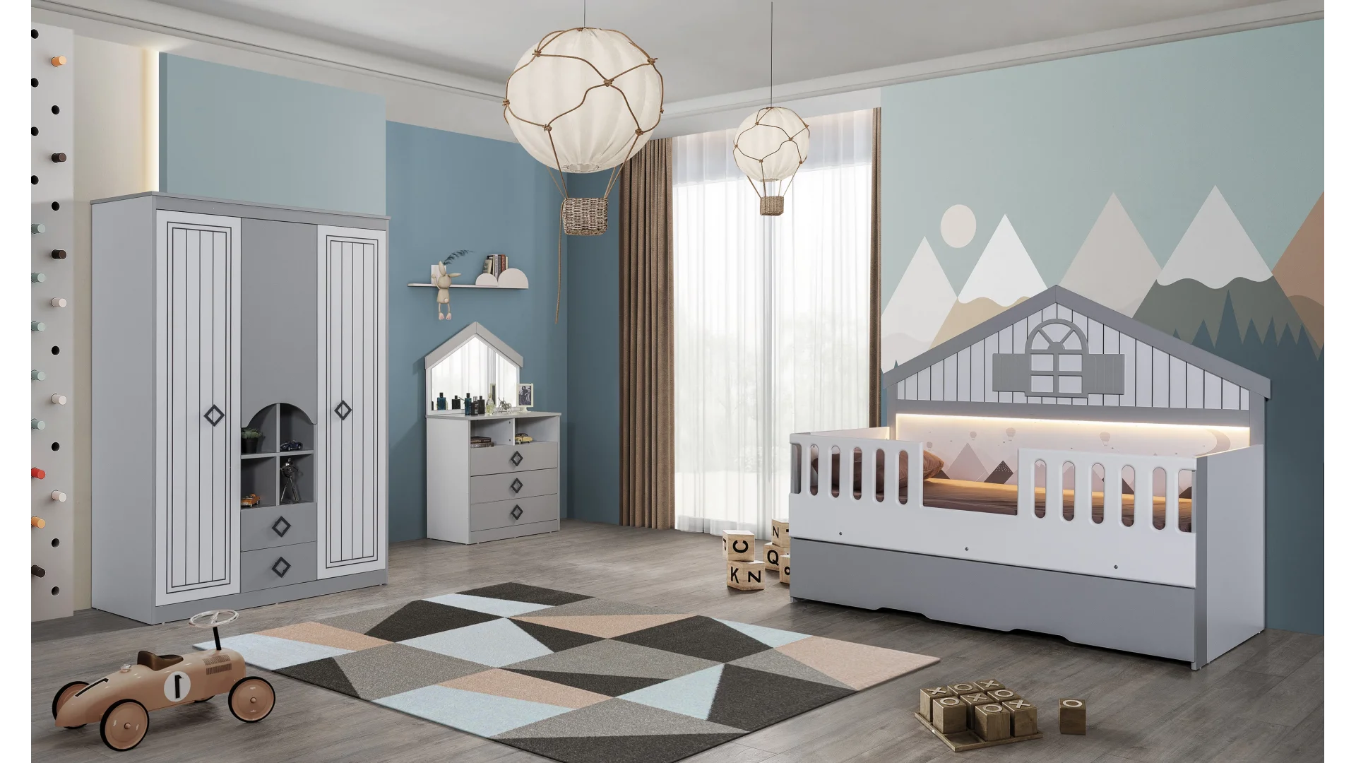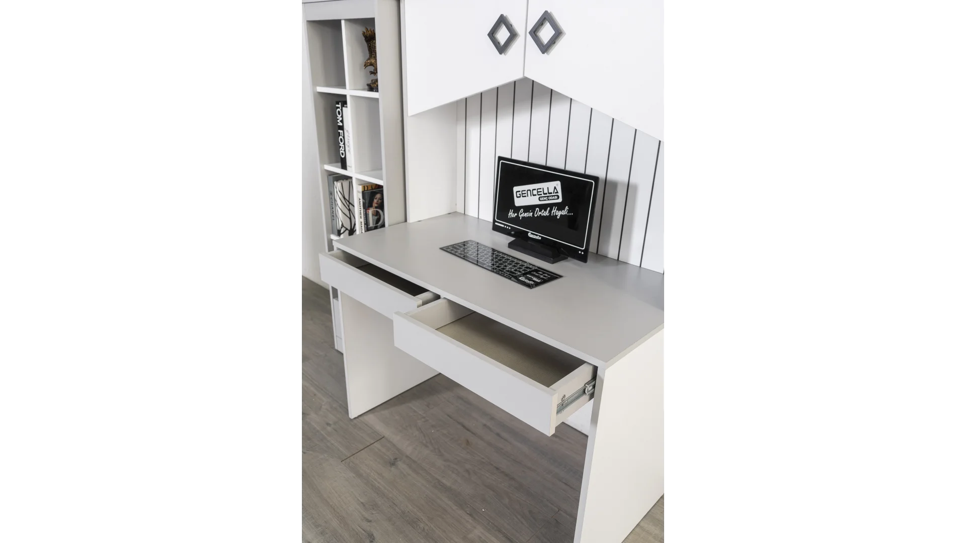 İnegöl Mobilyası Alaçatı Genç Odası Takımı, gençlerin odalarını düzenli, şık ve kullanışlı bir şekilde dekore etmeleri için ideal bir seçenektir.