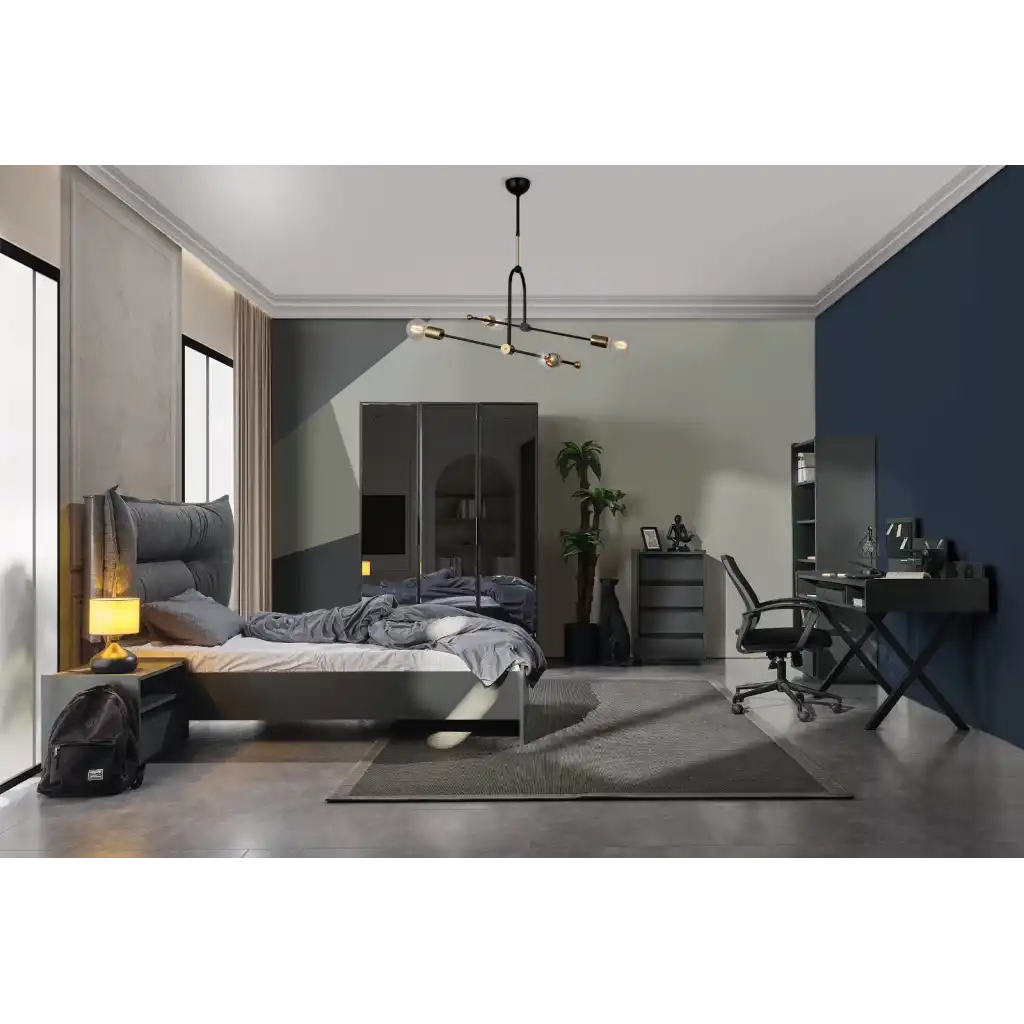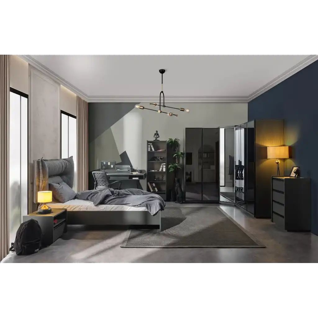 Takım, modüler dolap opsiyonuyla kişiselleştirilebilir ve odanın ihtiyaçlarına göre şekillendirilebilir. Şık ve dayanıklı malzemelerden üretilen karyola, gençlerin konforunu ve rahatını ön planda tutar. İnegöl Mobilya Aura Genç Odası Takımı, hem şıklığı hem de fonksiyonelliği bir arada sunar.
