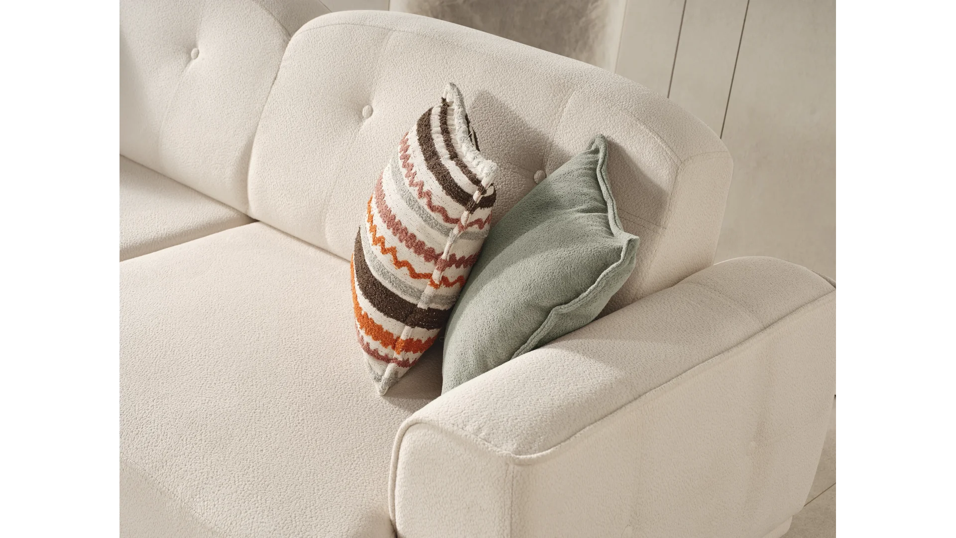 | Kumaş Bakım/Temizlik Önerisi | Güçlü çekimli süpürge ile işlem yapılması tavsiye edilmez, düğme kopması ve yüzeye elyaf çıknasına neden olabilir. Bu türden şikayetler garanti kapsamı dışındadır. Kesinlikle çamaşır suyu ve deterjan kullanmayınız. Leke olan yeri ıslak bez ile saf sabun kullanarak siliniz ve su ile durulayınız. Saç kurutma makinesi ile fazla yaklaştırmadan kurulayabilirsiniz. |