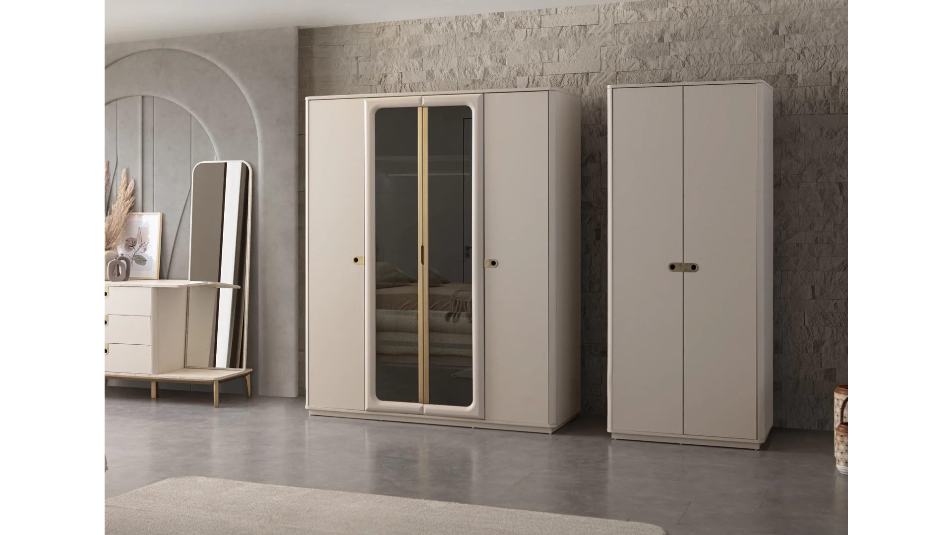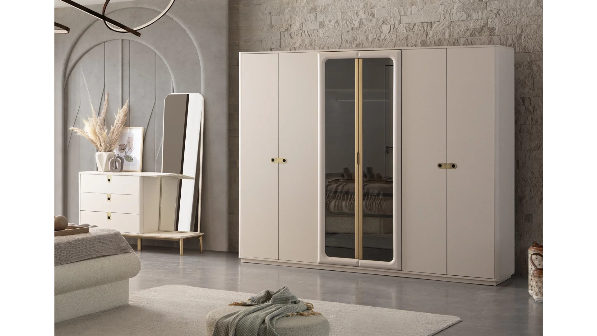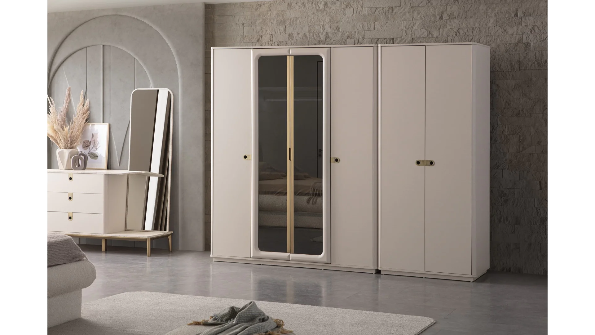 | Takım İçeriği | 1 adet Dolap,1 adet Karyola,1 adet Aynalı Şifonyer,2 adet Komodin |