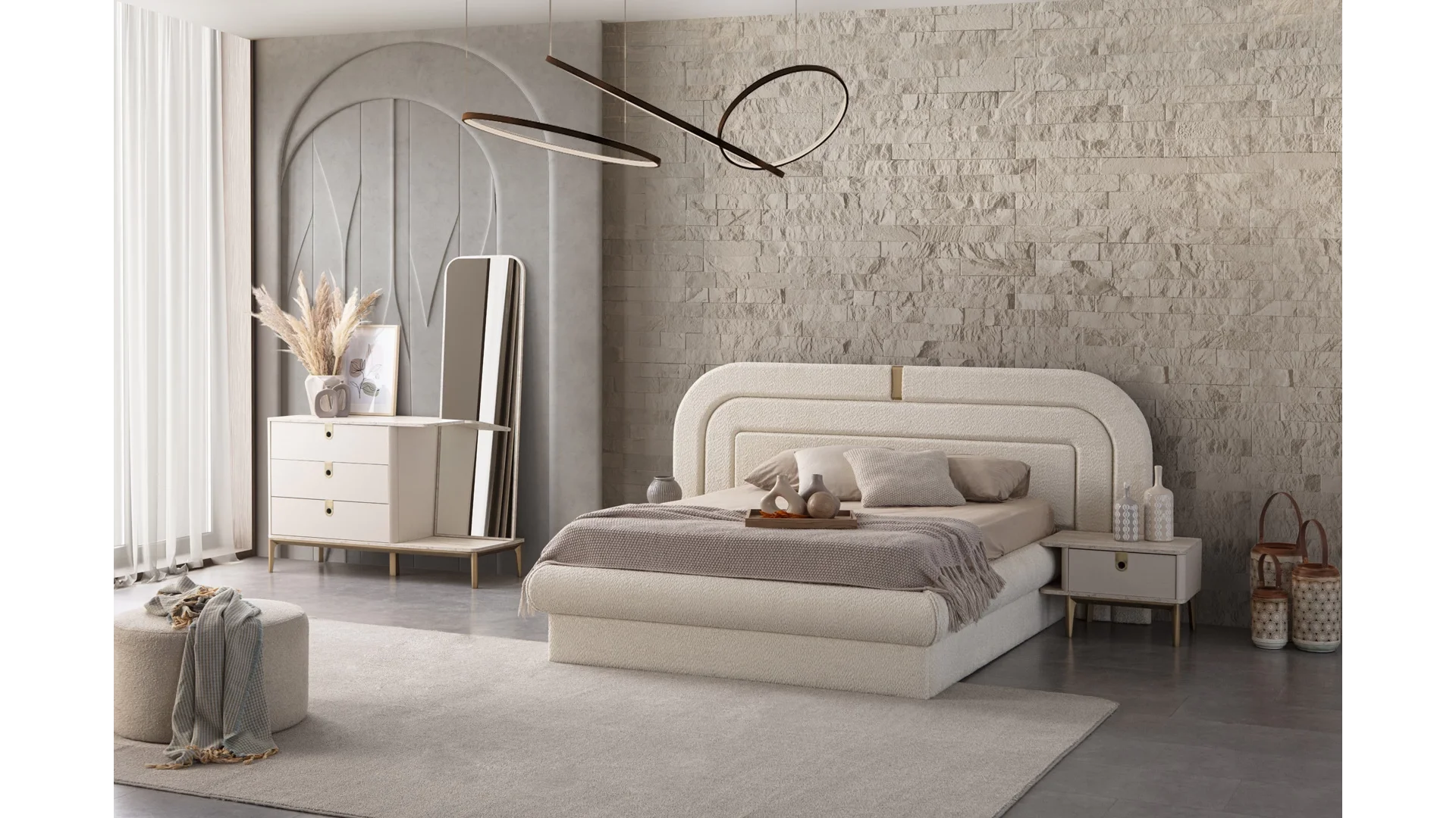 OCCO HOME markasının şık ve modern tasarıma sahip CupraYatak Odası, yatak odanızı mükemmel bir uyku ve dinlenme alanına dönüştürecek.