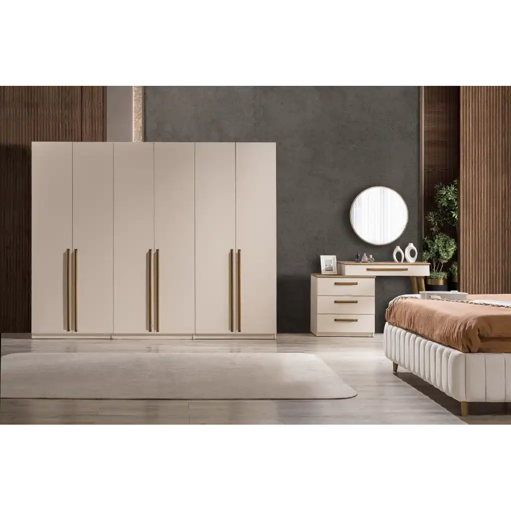 | Takım İçeriği | 1 adet Dolap,1 adet Karyola,1 adet Aynalı Şifonyer,2 adet Komodin |