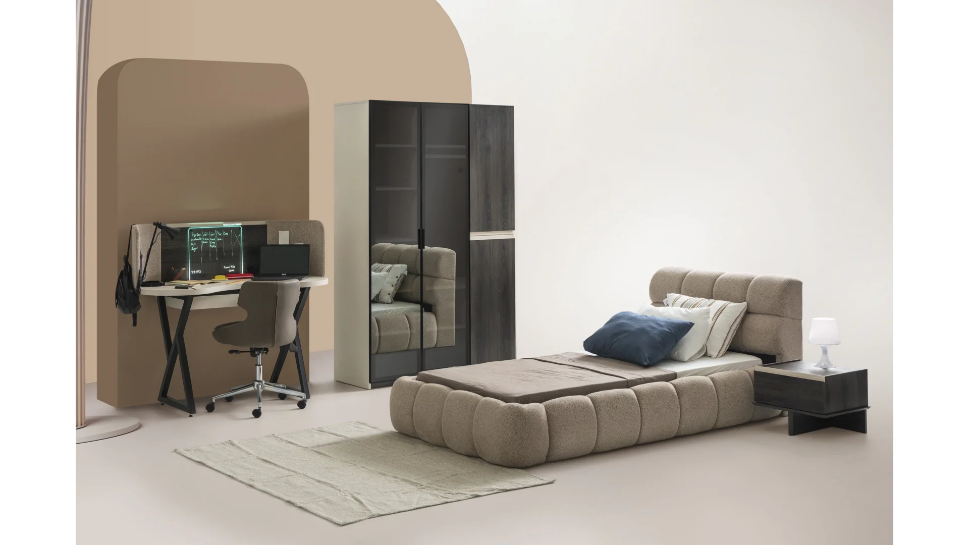 Ürün, gençlerin ihtiyaçları göz önünde bulundurularak tasarlanmıştır. Odanın fonksiyonelliğini artıran detaylarla birlikte şık bir görünüm sunar.