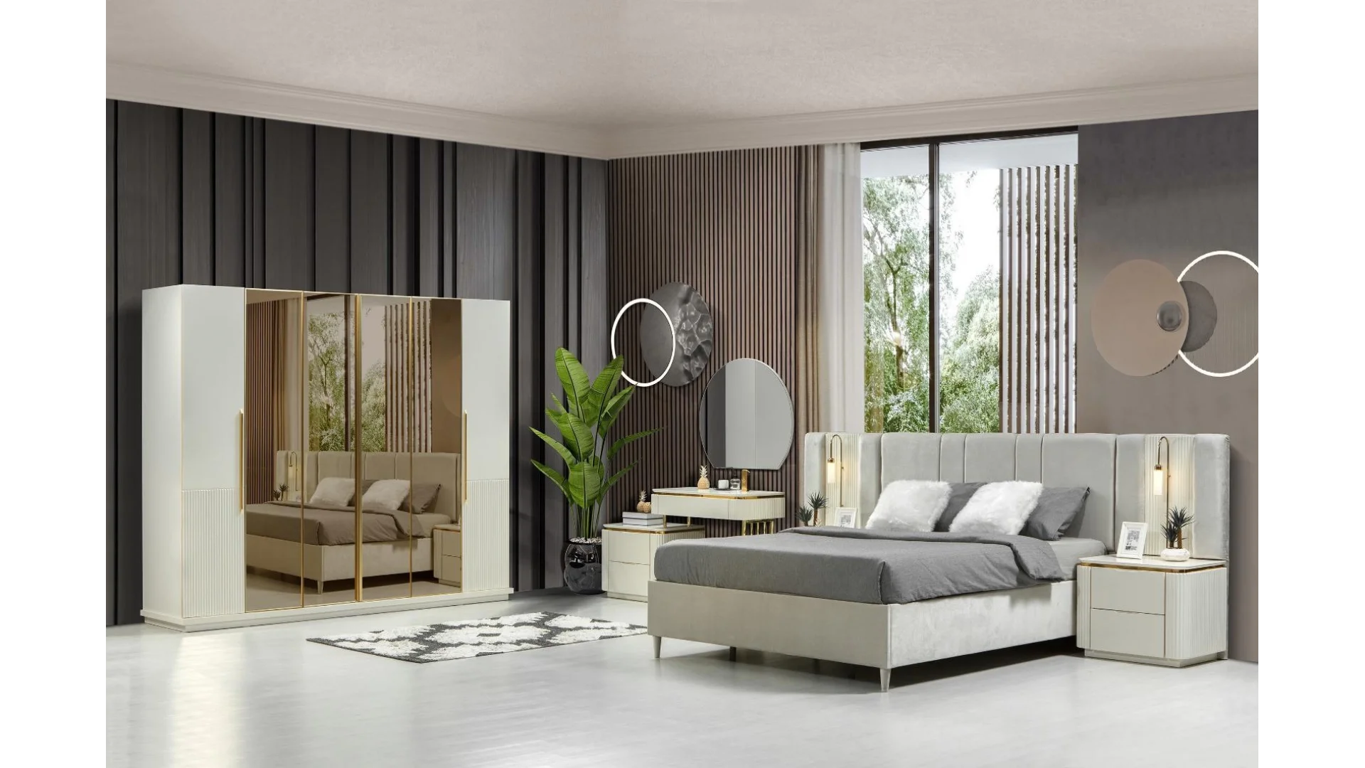 | Takım İçeriği | 1 adet Dolap,1 adet Karyola,1 adet Aynalı Şifonyer,2 adet Komodin |