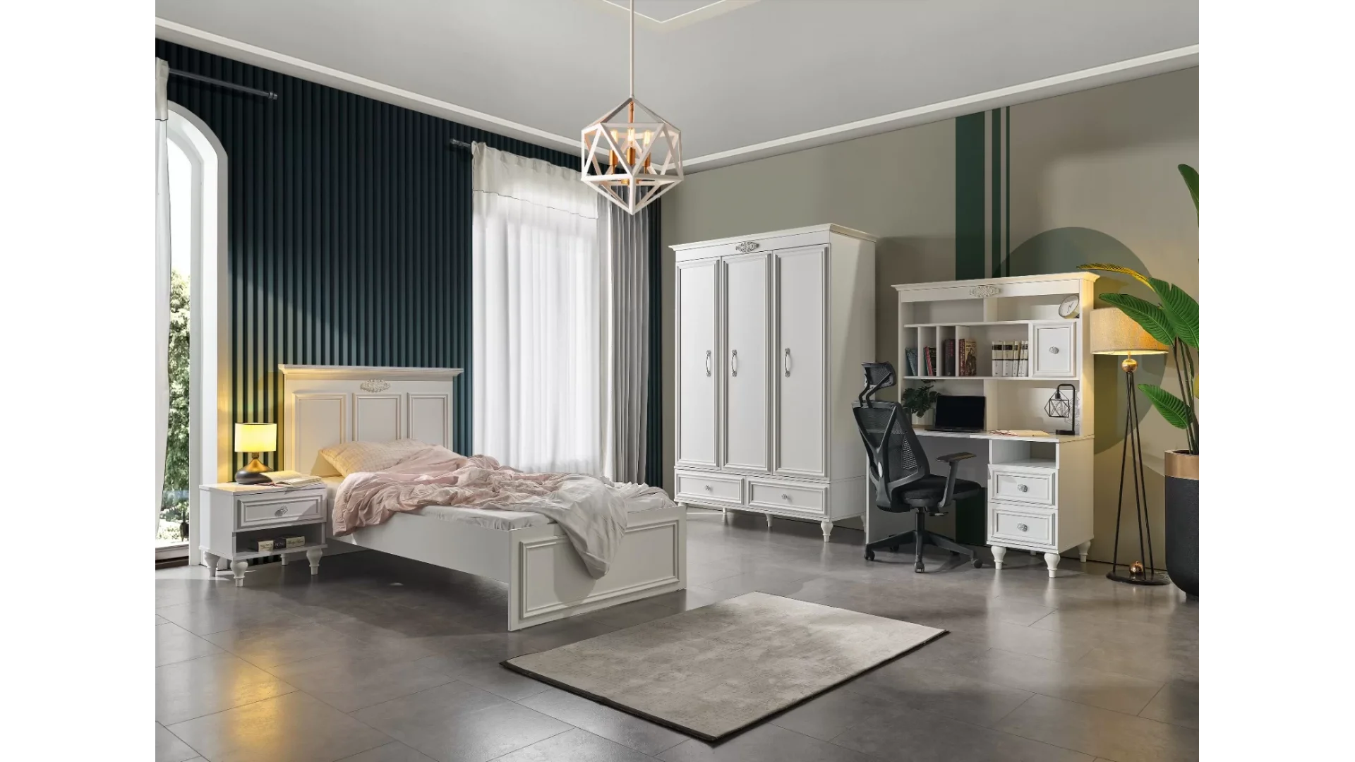 İskenderiye İskenderiye Beyaz Genç Odası, Occo Home kalitesiyle gençlerin konforunu ve stilini ön planda tutar.