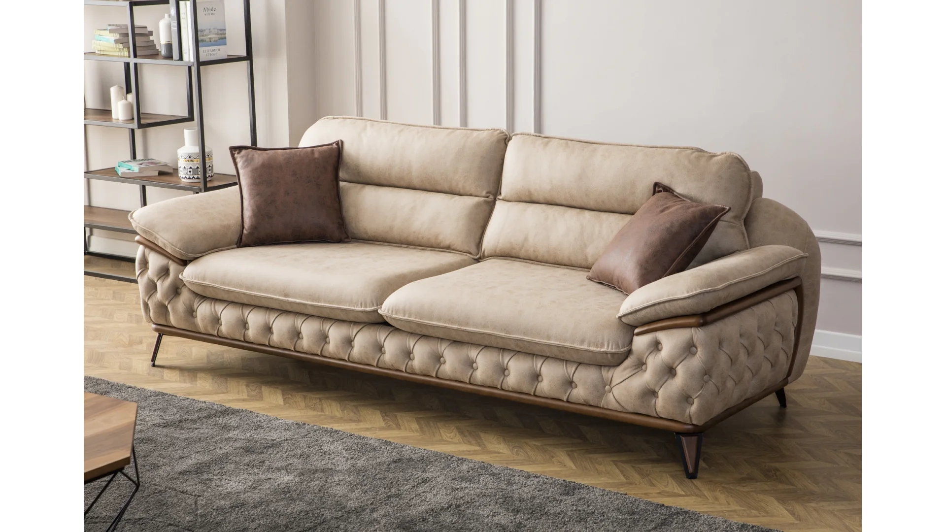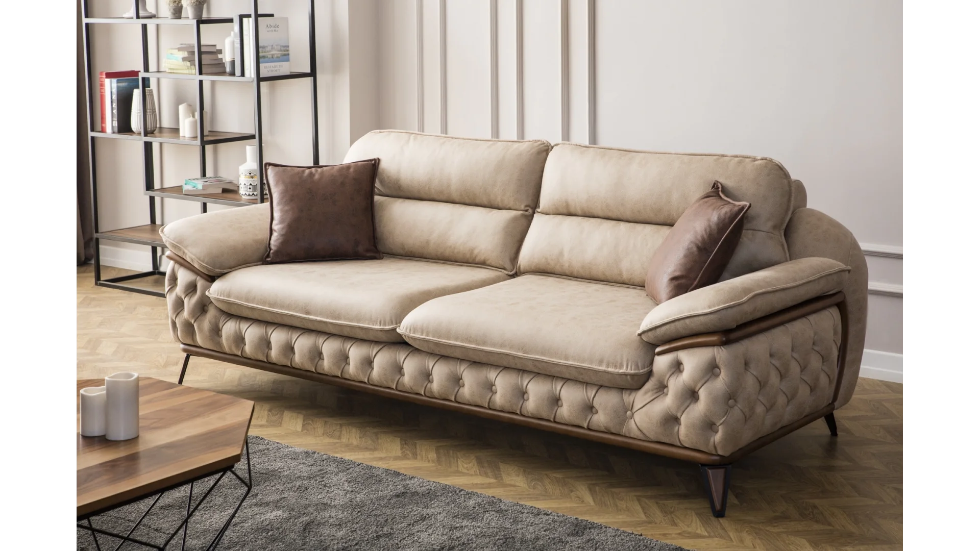 | Kumaş Bakım/Temizlik Önerisi | Güçlü çekimli süpürge ile işlem yapılması tavsiye edilmez, düğme kopması ve yüzeye elyaf çıknasına neden olabilir. Bu türden şikayetler garanti kapsamı dışındadır. Kesinlikle çamaşır suyu ve deterjan kullanmayınız. Leke olan yeri ıslak bez ile saf sabun kullanarak siliniz ve su ile durulayınız. Saç kurutma makinesi ile fazla yaklaştırmadan kurulayabilirsiniz. |