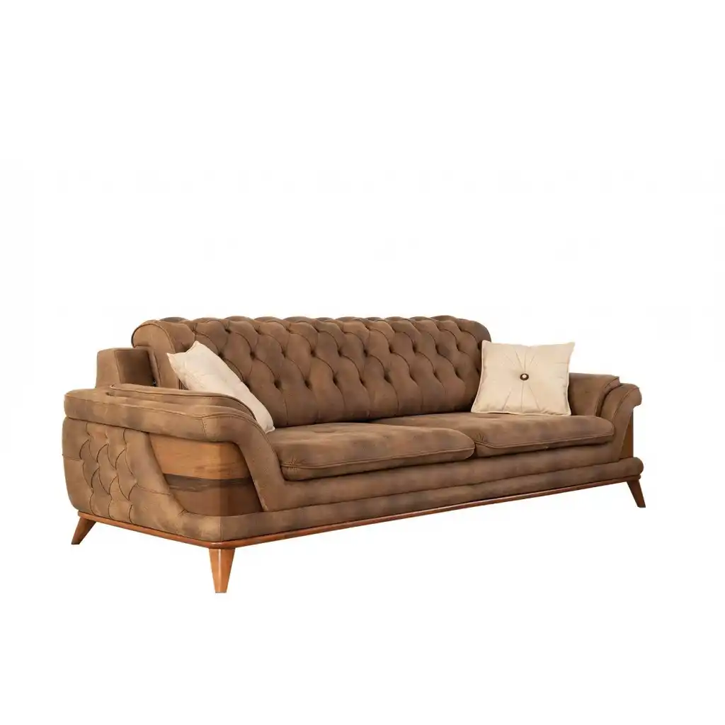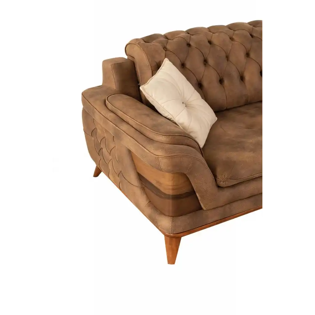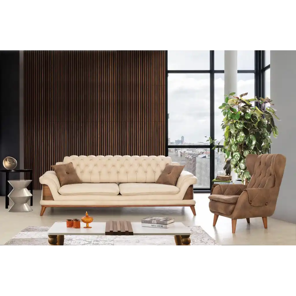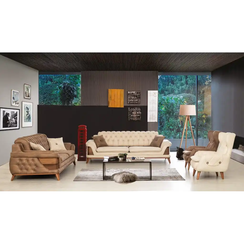 Kervan Krem Kahve Koltuk Takımı, Occo Home Koltuk markasının özenle tasarladığı şık ve konforlu bir oturma odası takımıdır.