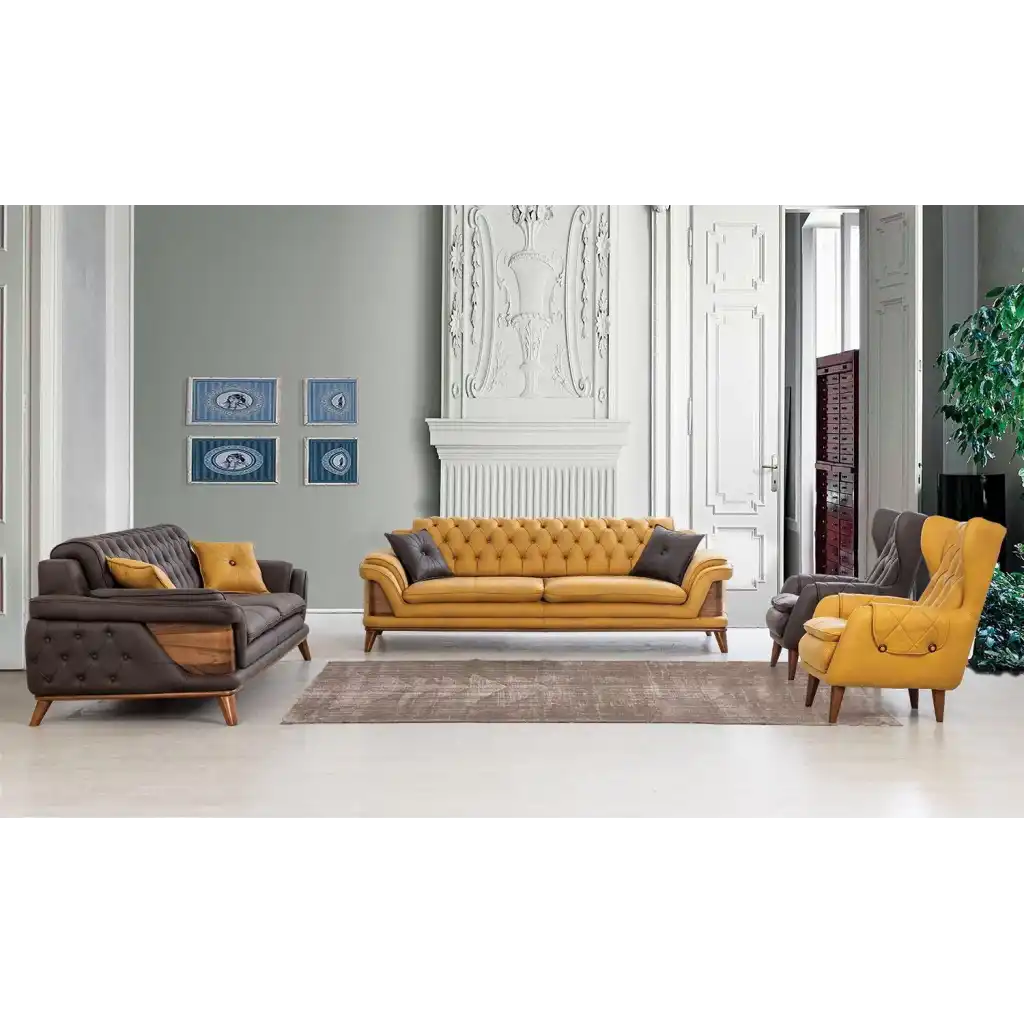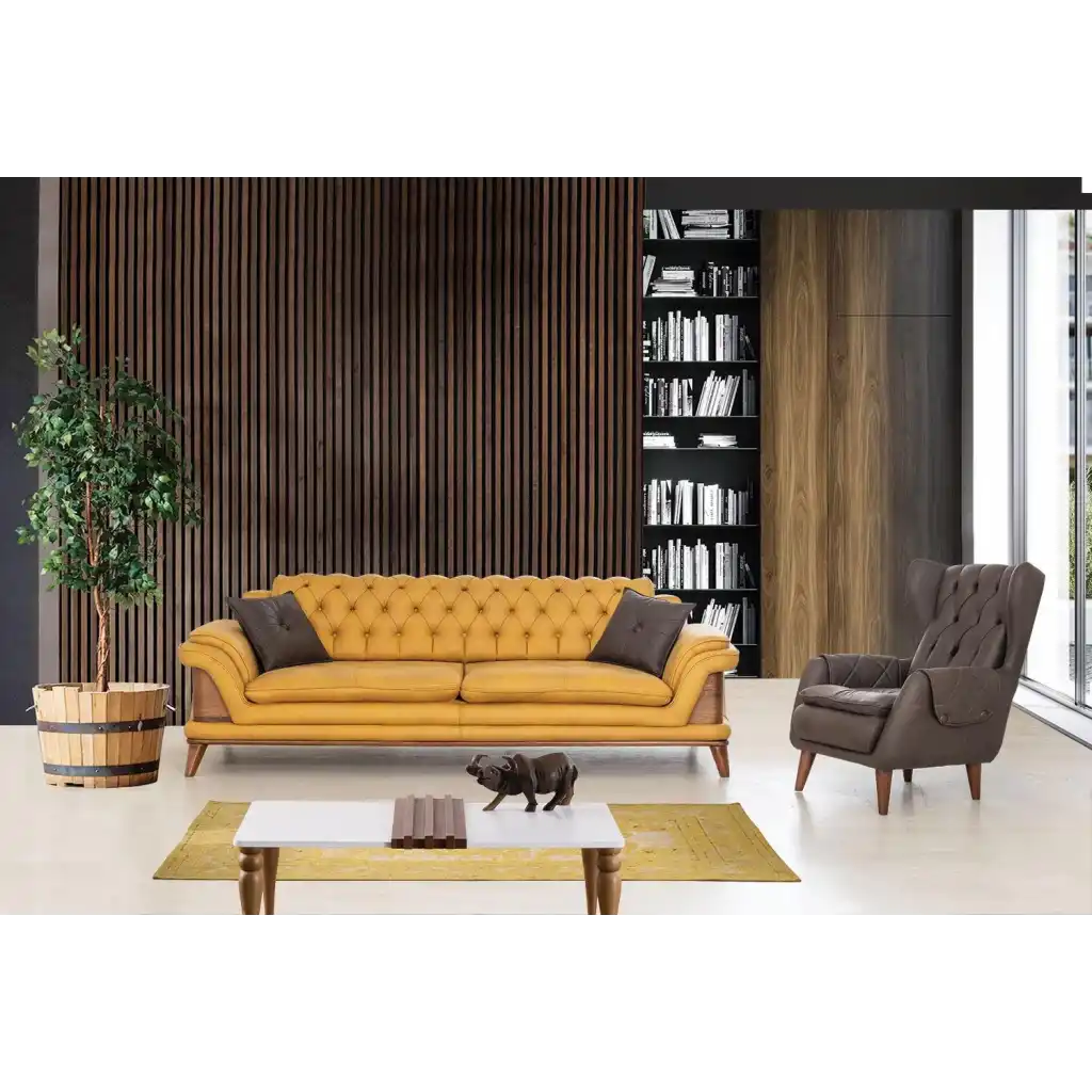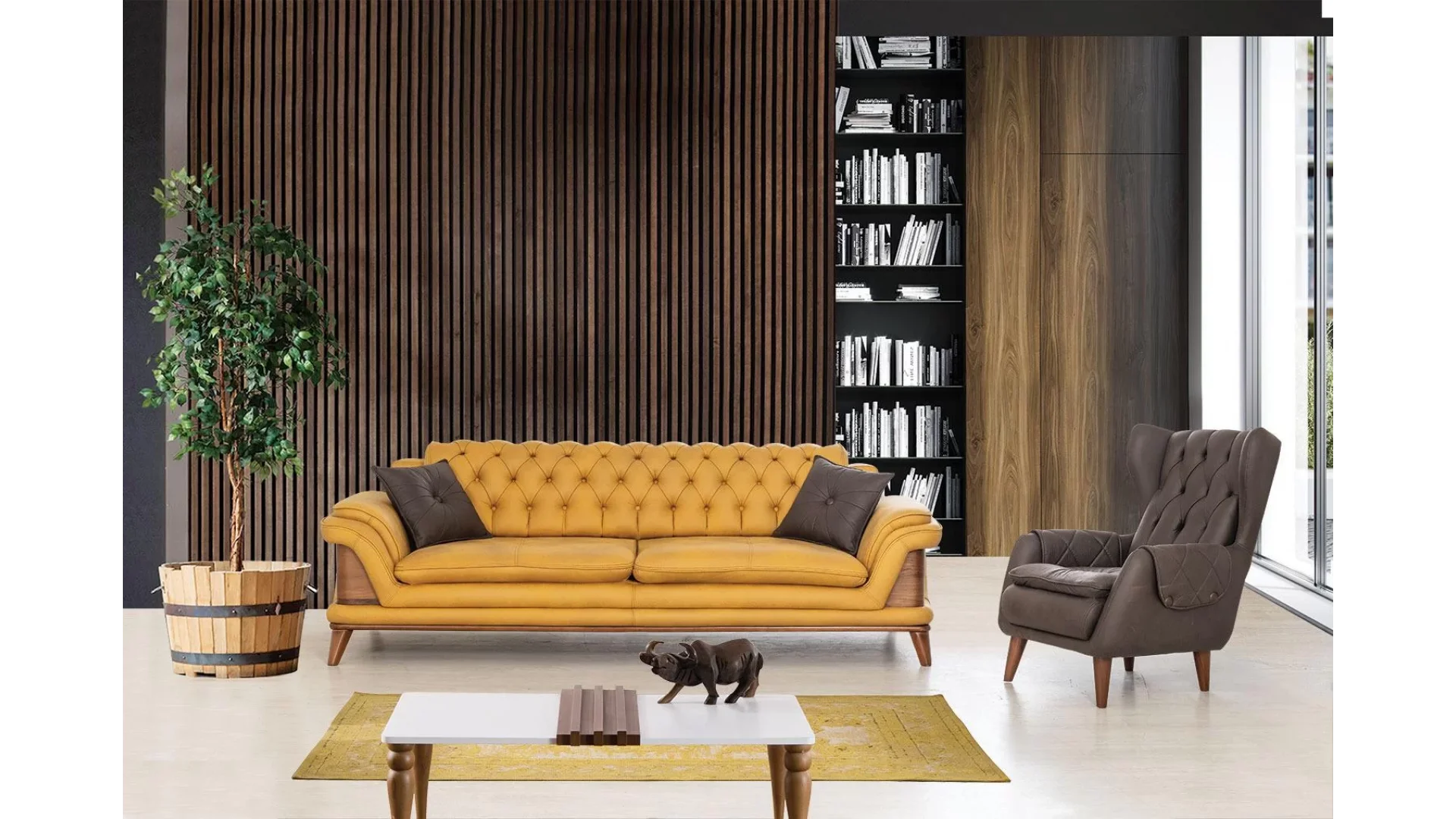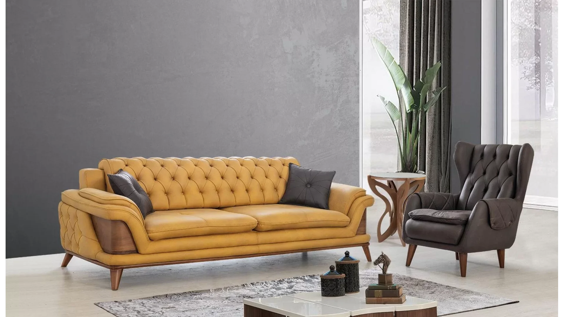 Evinizin oturma odasına ferahlık ve şıklık katacak olan Kervan Sarı Antrasit Koltuk Takımı, misafirlerinizi en güzel şekilde ağırlamanızı sağlar.