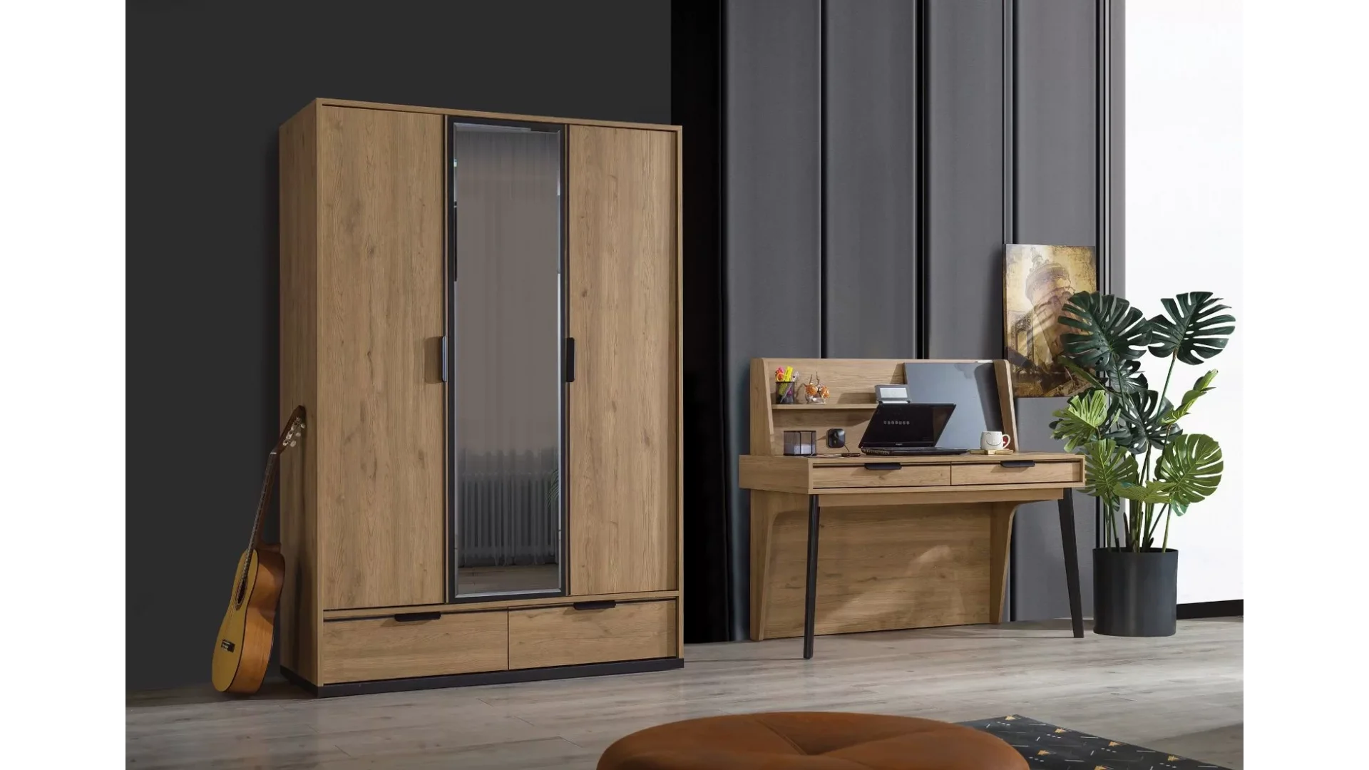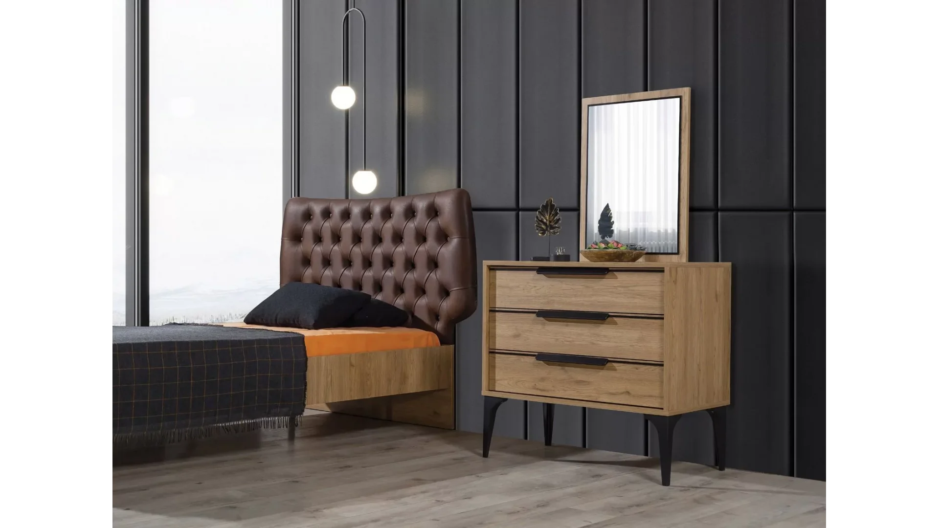 - Çekmeceleri ve dolaplarıyla geniş depolama alanı sunar, odanın düzenini korur.