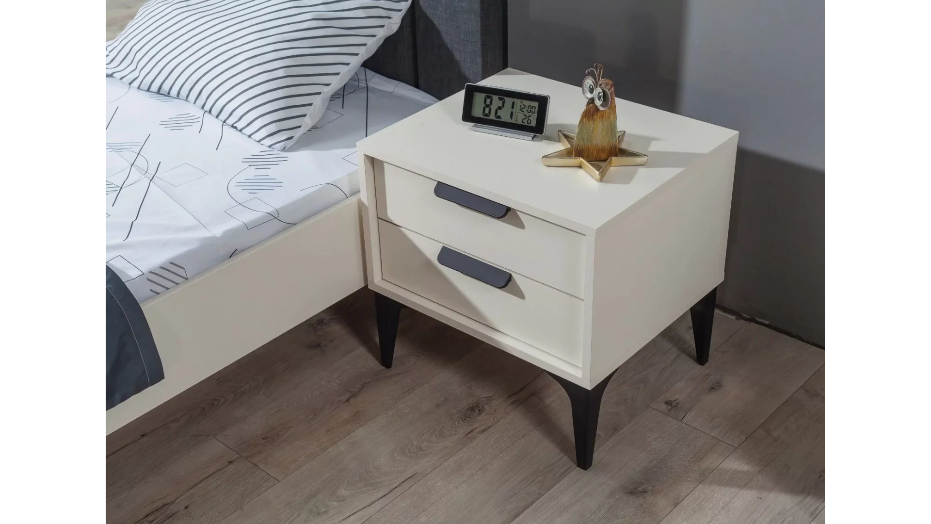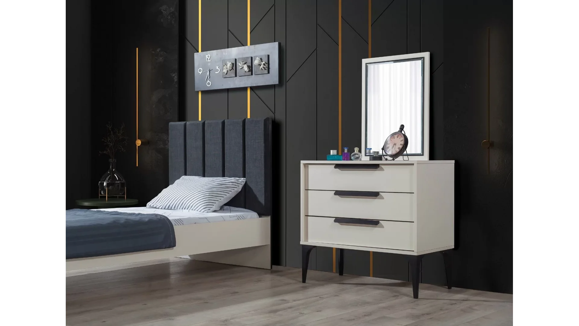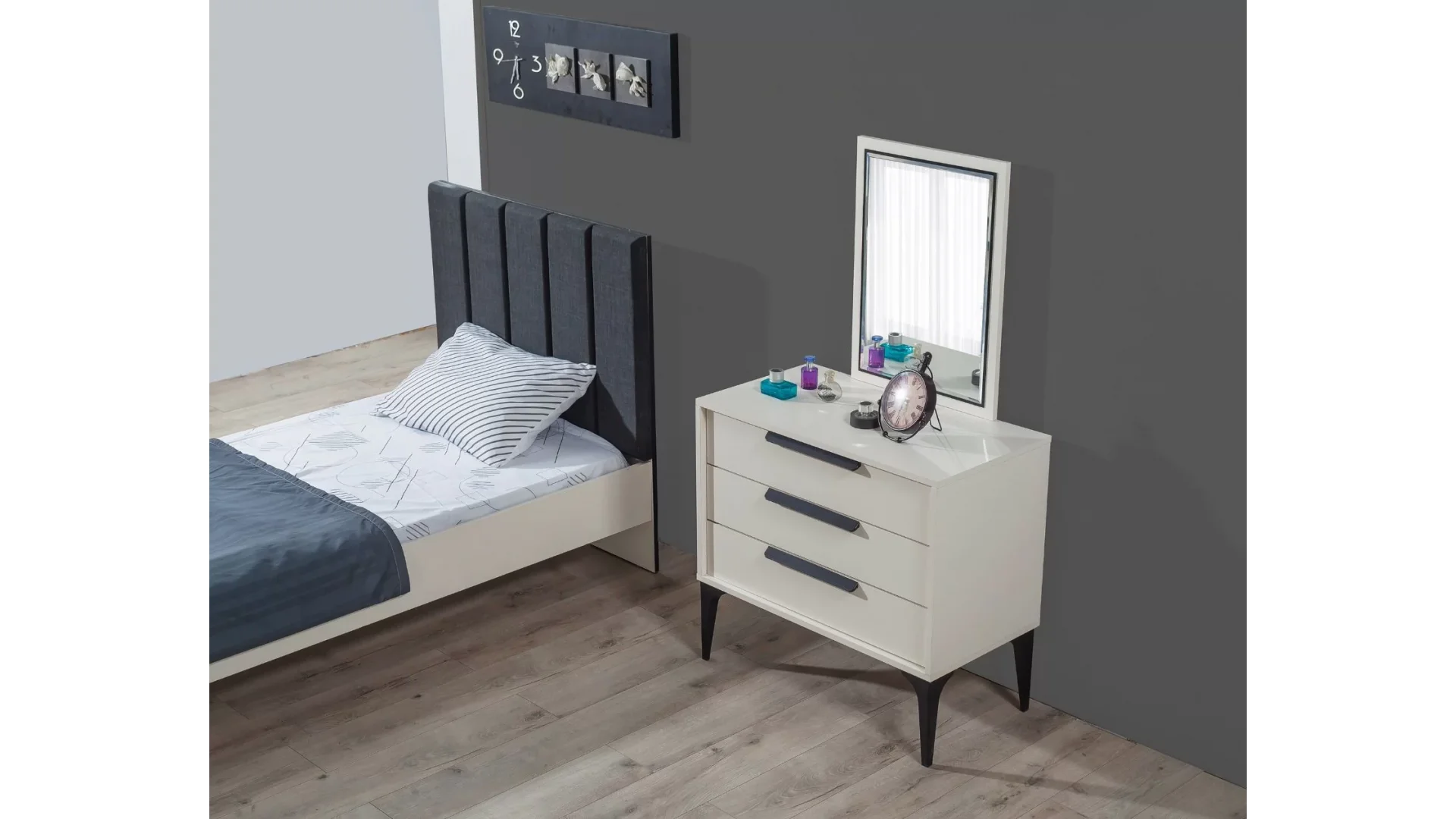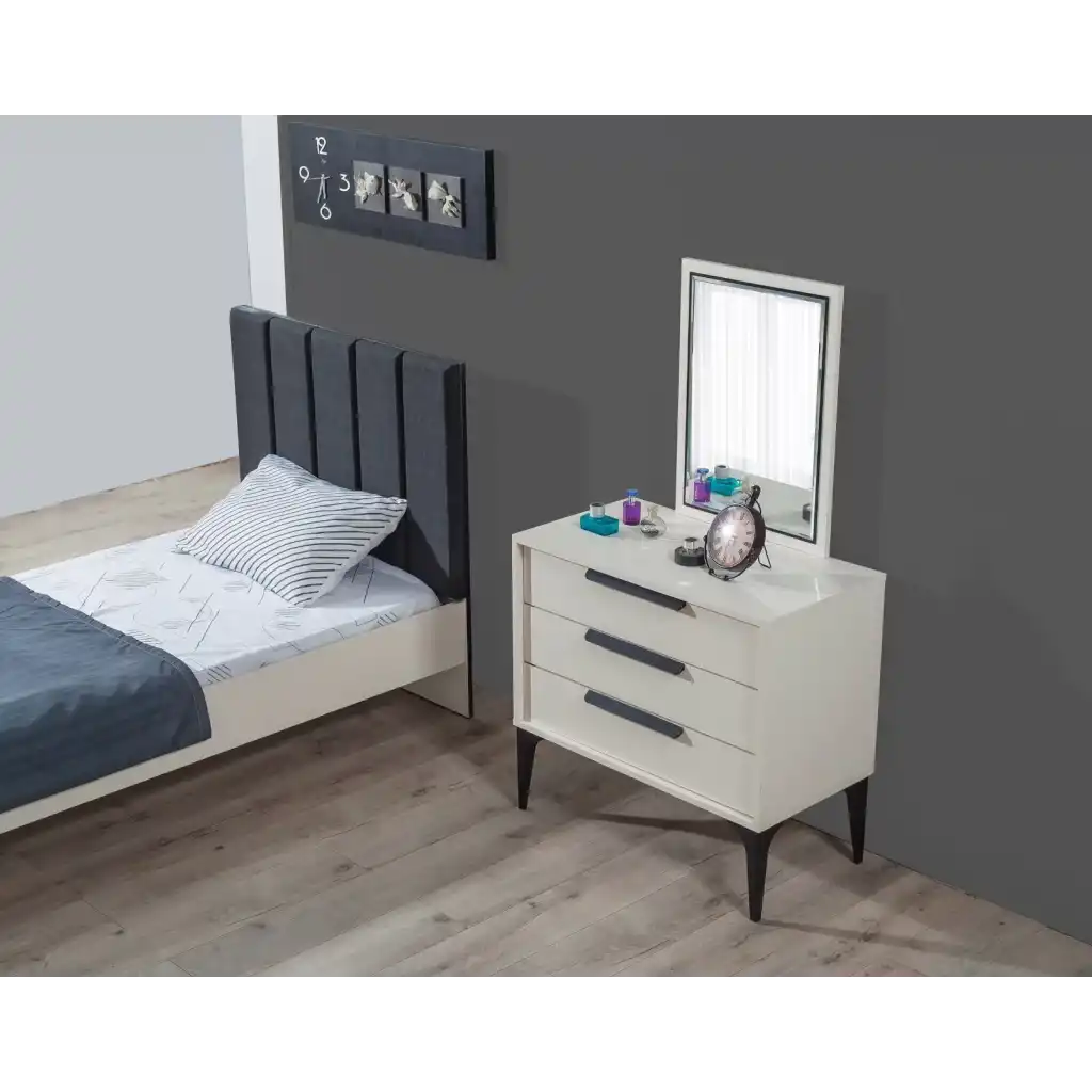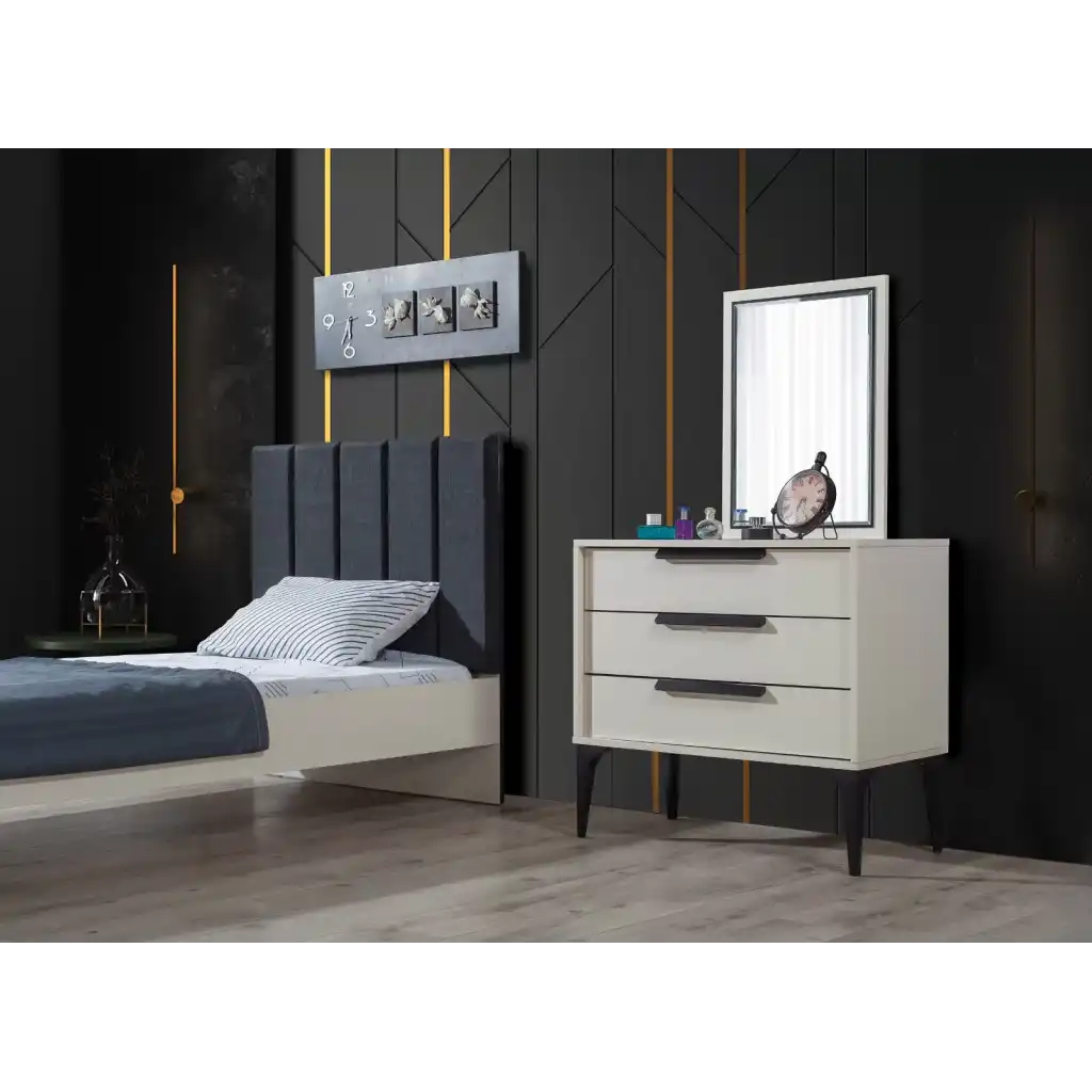 - Çekmeceleri ve dolaplarıyla geniş depolama alanı sunar, odanın düzenini korur.