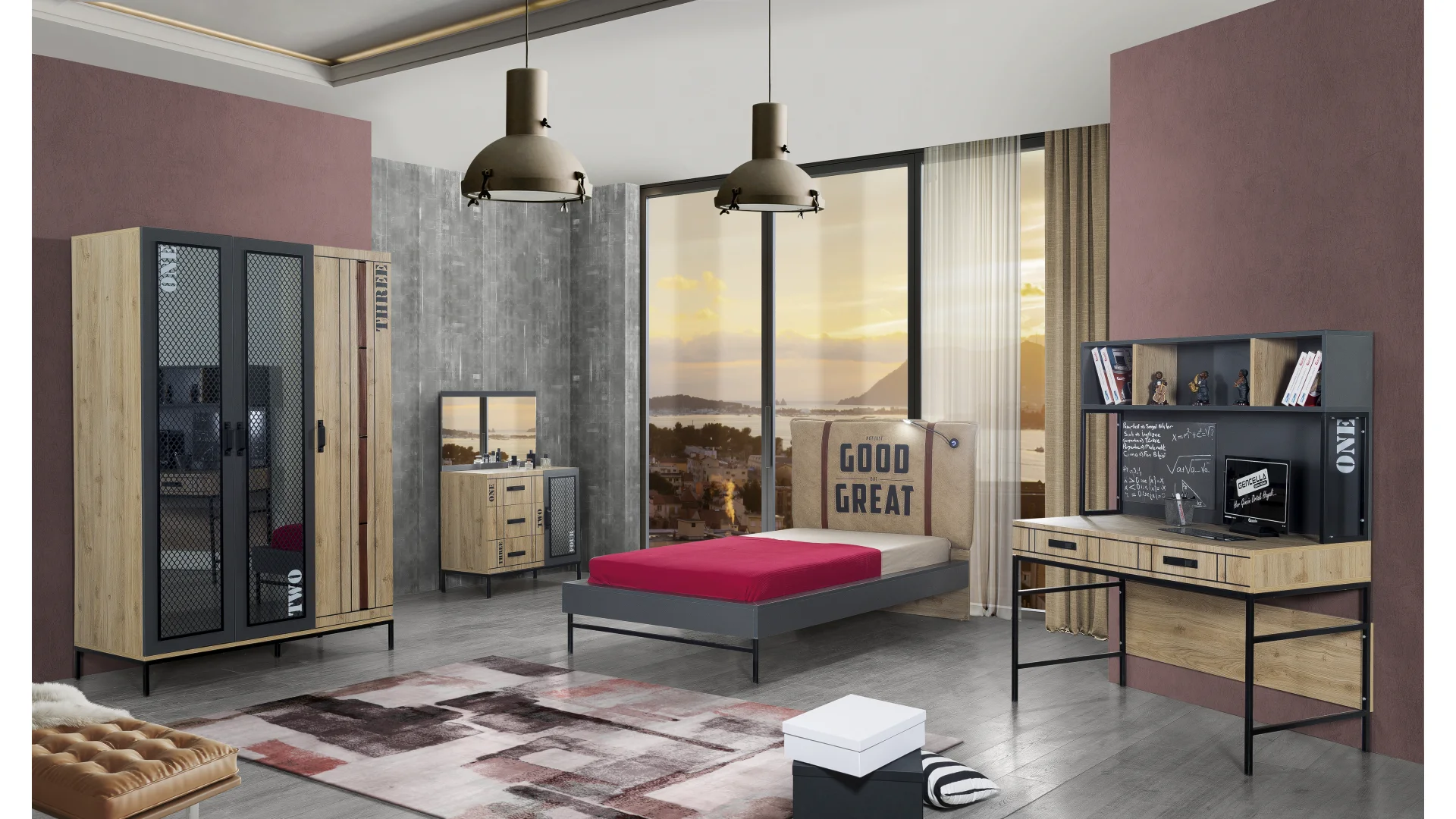 İnegöl Mobilya Loft Genç Odası Takımı, gençlerin konforunu ve ihtiyaçlarını göz önünde bulundurarak tasarlanmıştır. Bu takım ile genç odalarınızı istediğiniz gibi düzenleyebilir ve gençlerin tarzını yansıtabilirsiniz.
