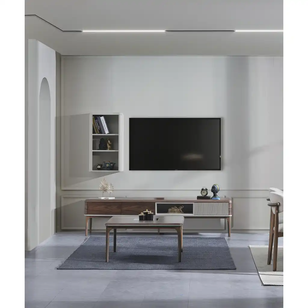 İnegöl Mobilya NevaTv Ünitesi Ünitesi, yaşam alanınıza estetik bir hava kazandırırken, fonksiyonelliğiyle de beklentilerinizi karşılıyor.