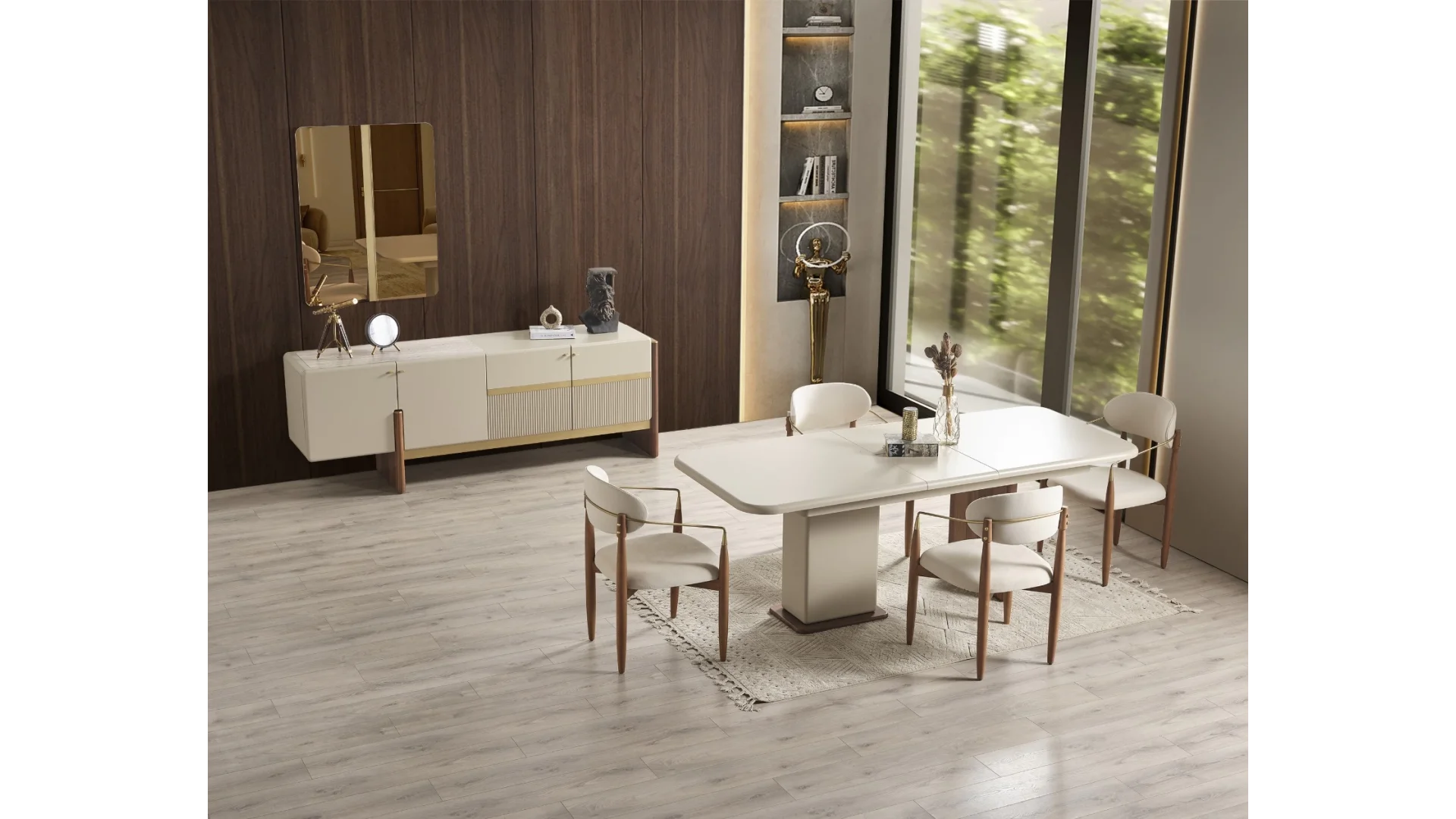 İnegöl Mobilya Olivia Yemek Odası, hem görsel açıdan şık bir atmosfer sunarken, hem de konforlu bir yemek deneyimi yaşamanızı sağlar.