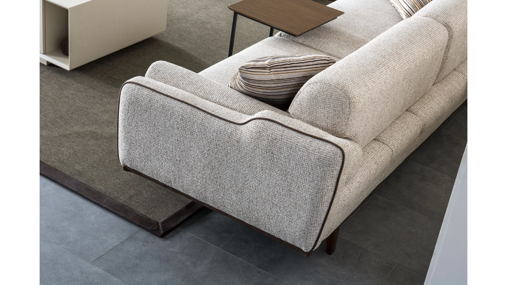 | Kumaş Bakım/Temizlik Önerisi | Güçlü çekimli süpürge ile işlem yapılması tavsiye edilmez, düğme kopması ve yüzeye elyaf çıknasına neden olabilir. Bu türden şikayetler garanti kapsamı dışındadır. Kesinlikle çamaşır suyu ve deterjan kullanmayınız. Leke olan yeri ıslak bez ile saf sabun kullanarak siliniz ve su ile durulayınız. Saç kurutma makinesi ile fazla yaklaştırmadan kurulayabilirsiniz. |