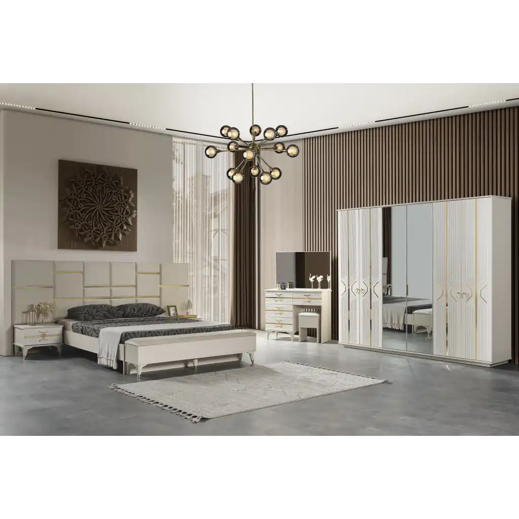 | Takım İçeriği | 1 adet Dolap,1 adet Karyola,1 adet Aynalı Şifonyer,2 adet Komodin |