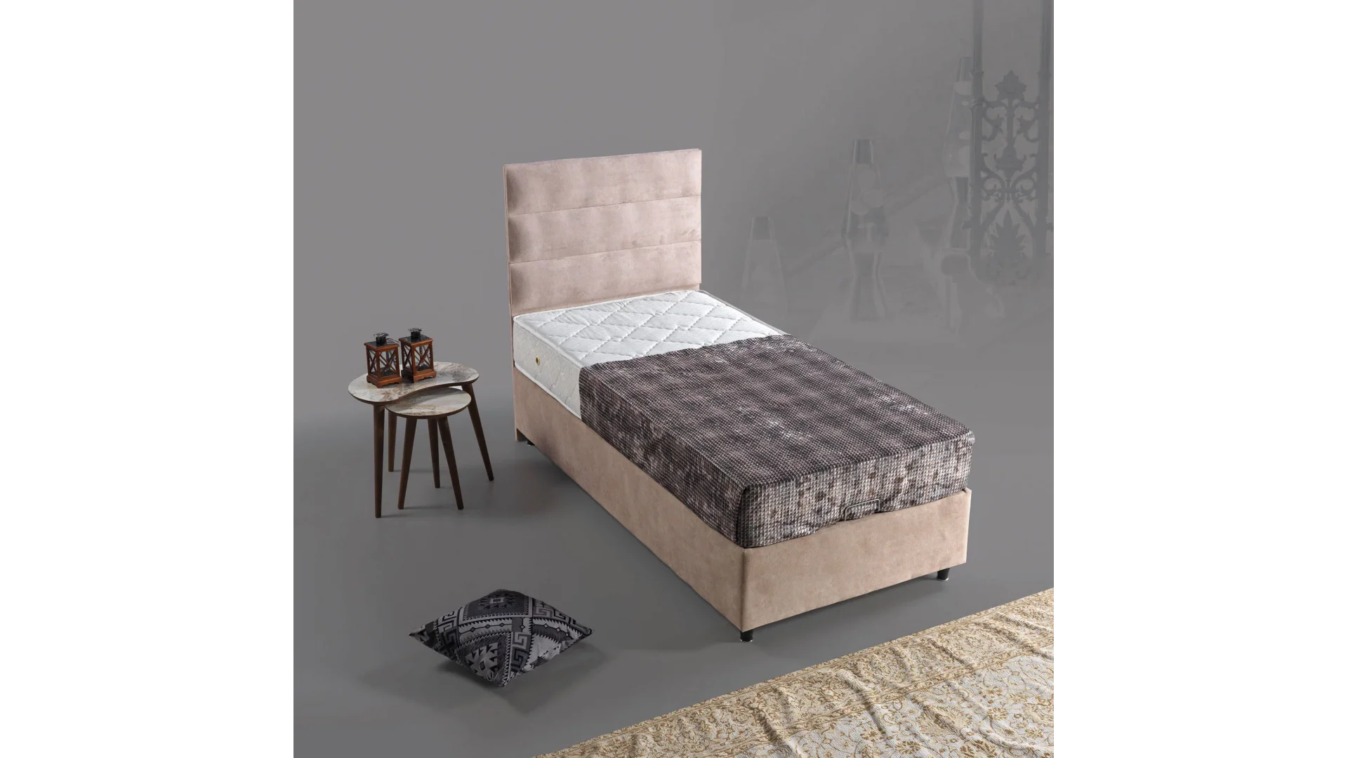 | Baza Malzemesi | Çelik Konstrüksiyon + MDF + Sünger + Kumaş |