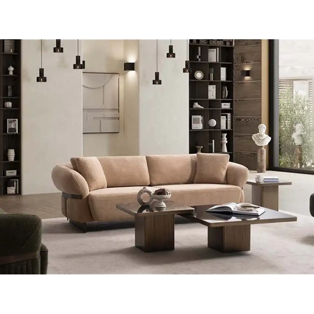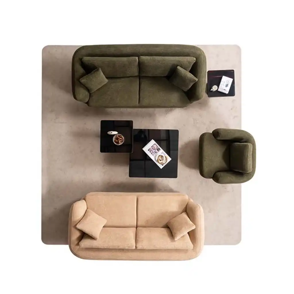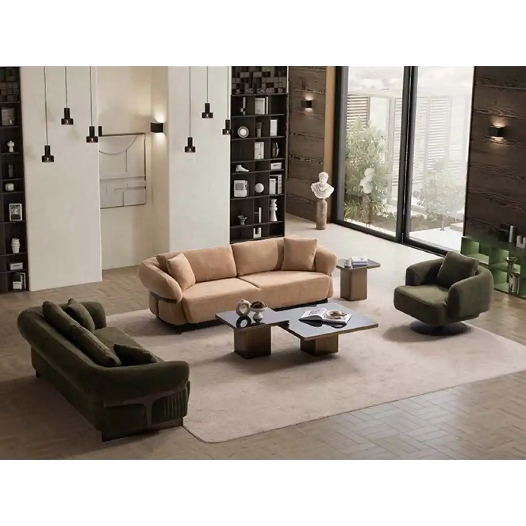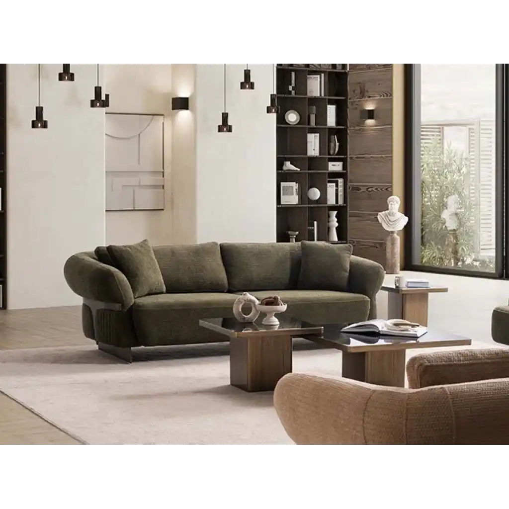 - Üçlü koltuk, Üçlü koltuk ve tekli koltuktan oluşan takım, tamamlayıcı yastıklar ile şıklığını pekiştirir.