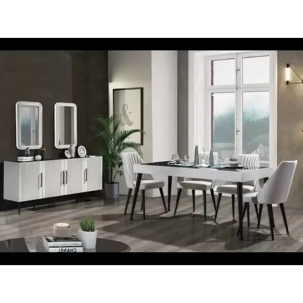 | Yemek Odası | 1 Adet Konsol ve Aynası, 1 Adet Yemek Masası, 6 Adet Sandalye'den Oluşmaktadır. |