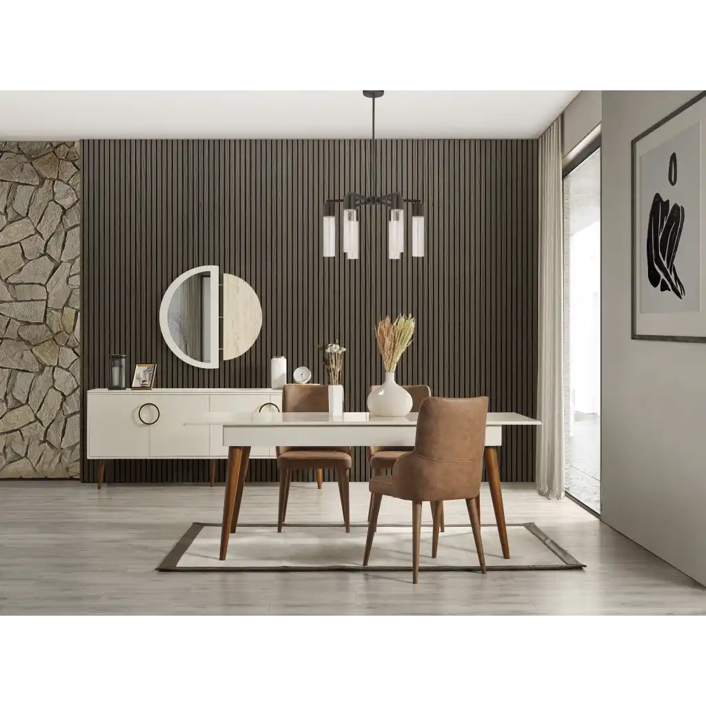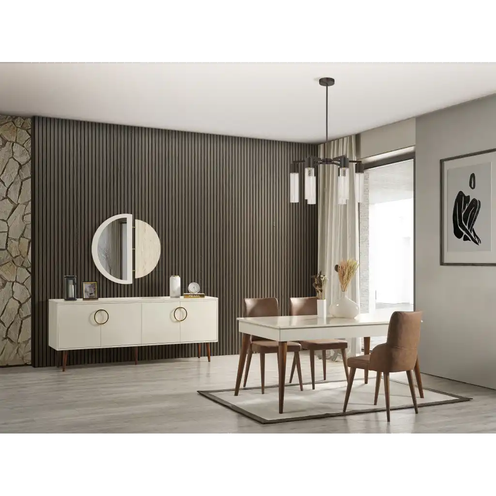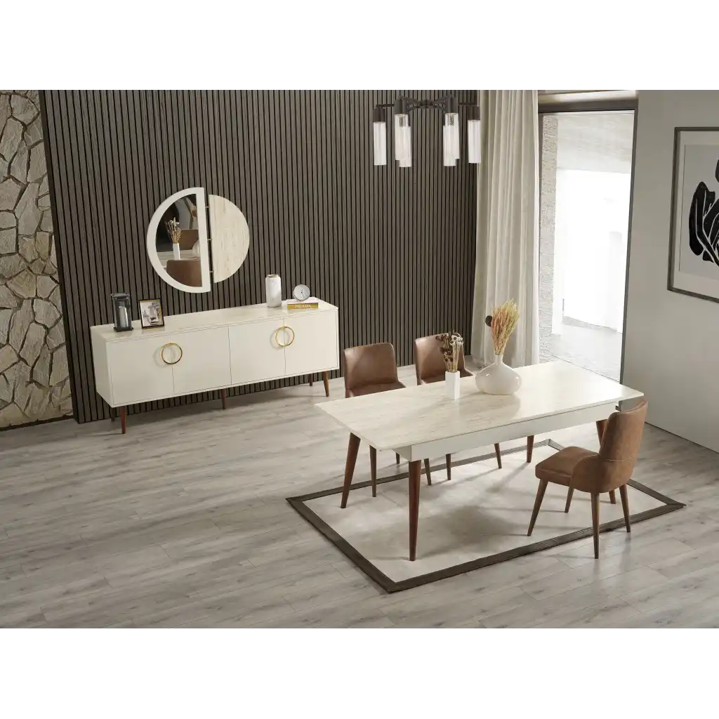 Occo Home'in şık tasarımı ve kaliteli işçiliği ile öne çıkan İnegöl Mobilyası MK 75 Yemek Odası, evinizde şıklığı ve konforu bir araya getiriyor. Bu yemek odası takımı ile yemek zamanlarınızı daha keyifli hale getirebilir, misafirlerinizi ağırlarken şıklığınızı konuşturabilirsiniz.