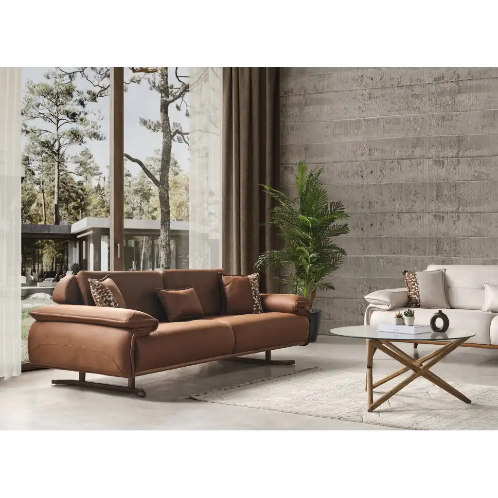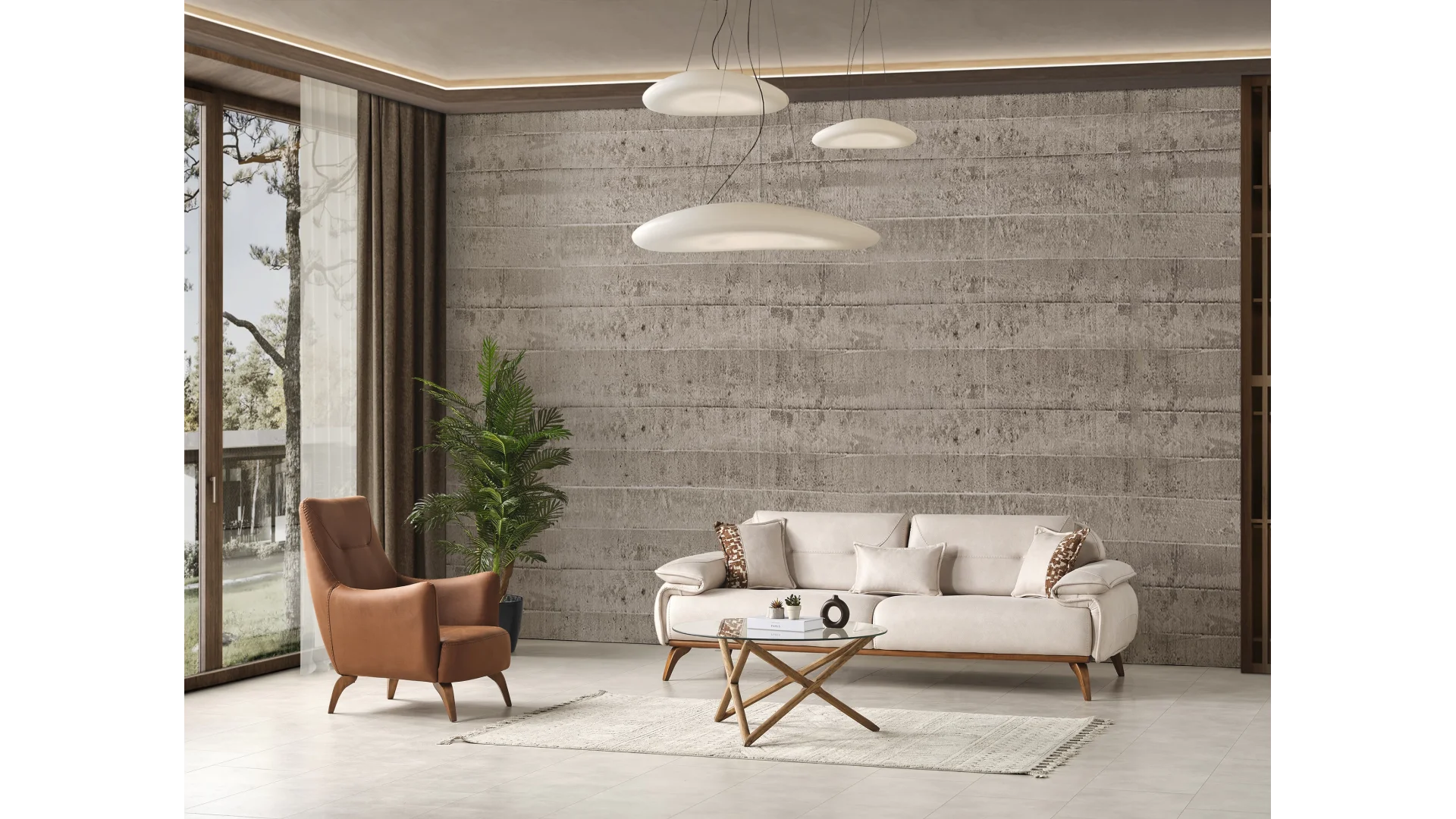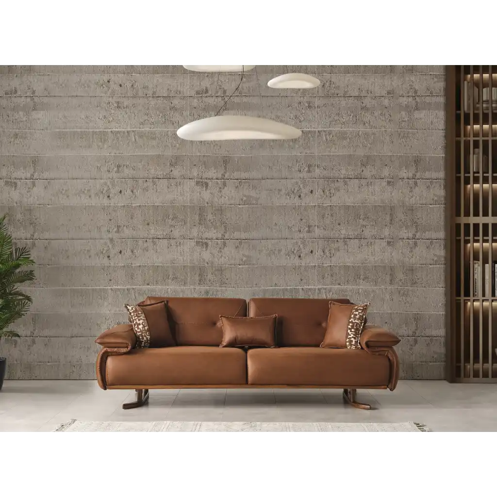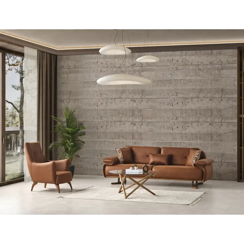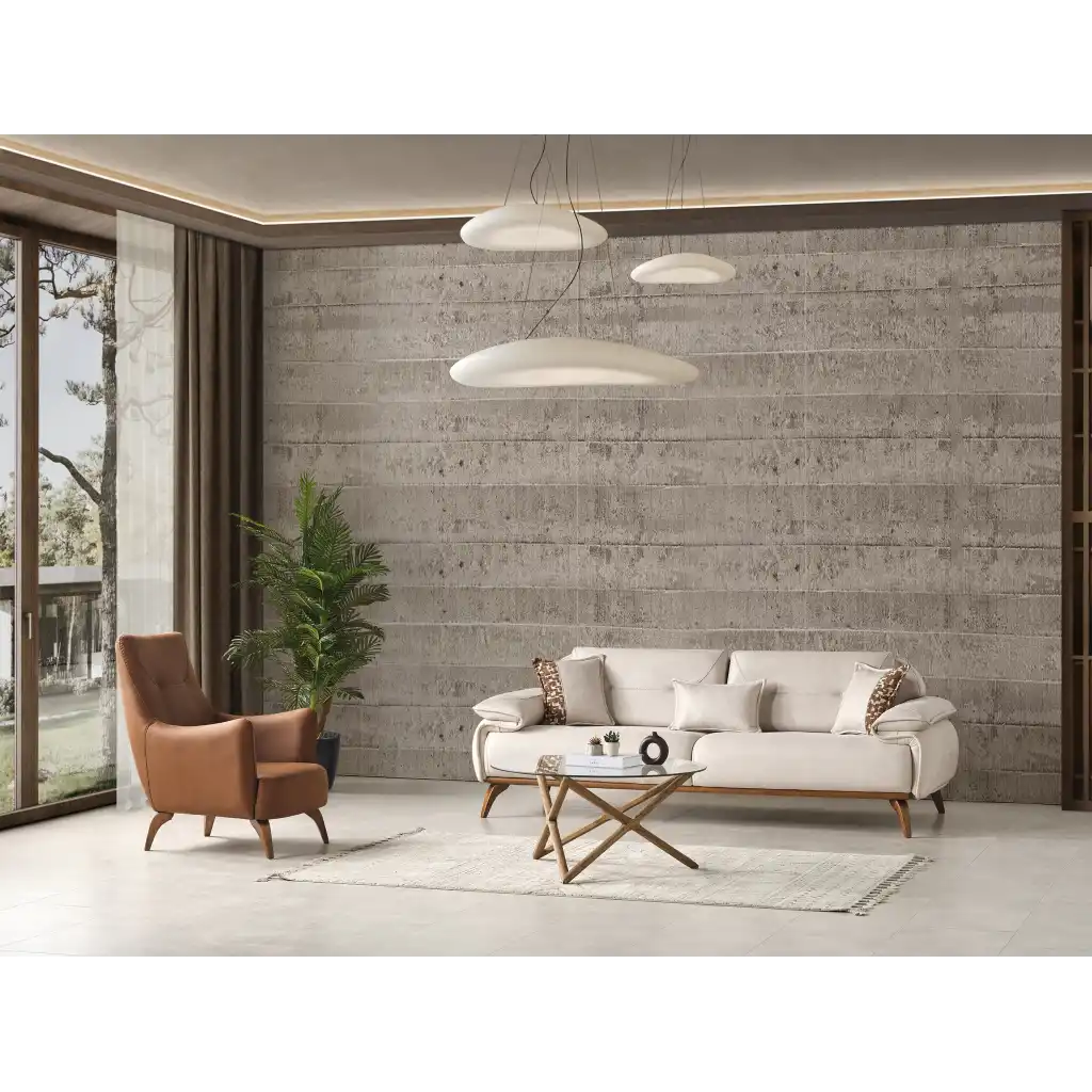 Yumuşak dokulu kumaşıyla sizi kucaklayan Occo koltuk takımı, oturma odanızın dekorasyonunu tamamlayacak şık detaylara sahiptir.