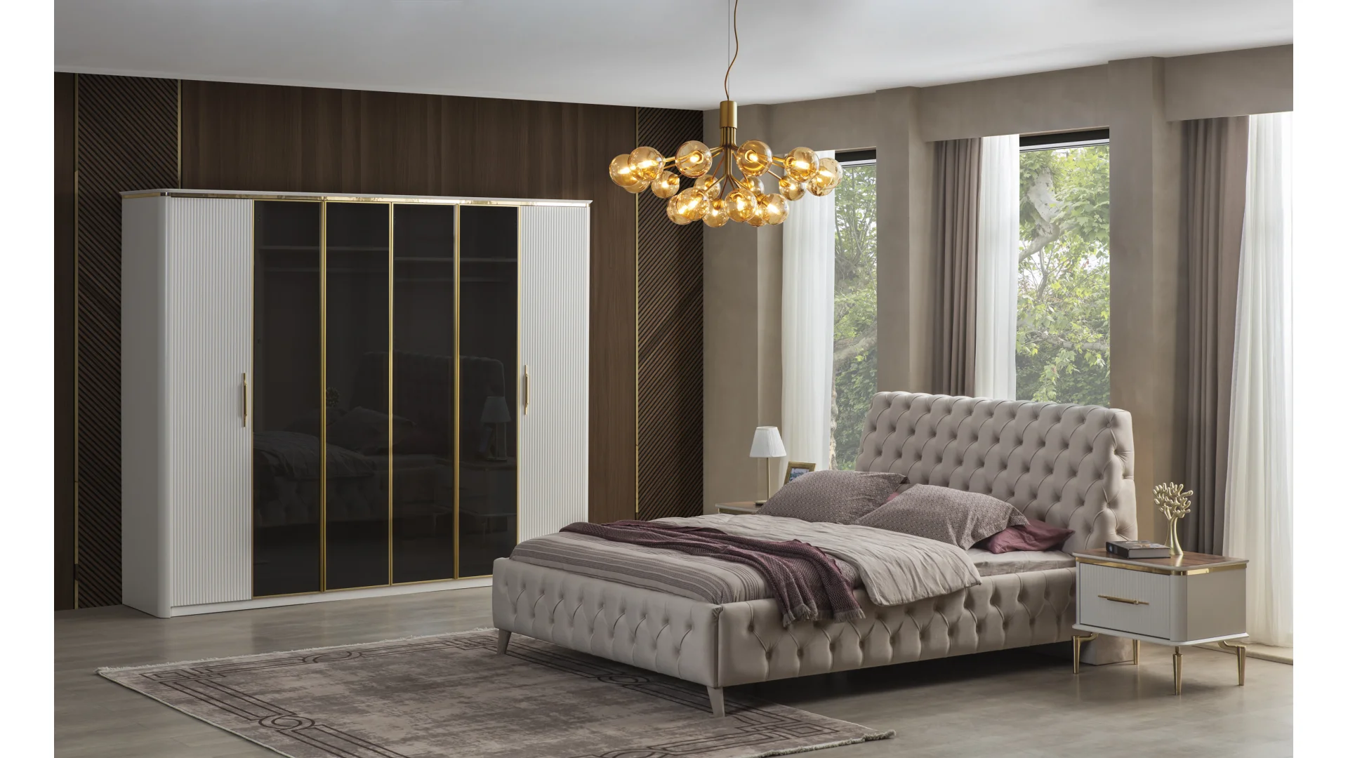 | Takım İçeriği | 1 adet Dolap,1 adet Karyola,1 adet Aynalı Şifonyer,2 adet Komodin |