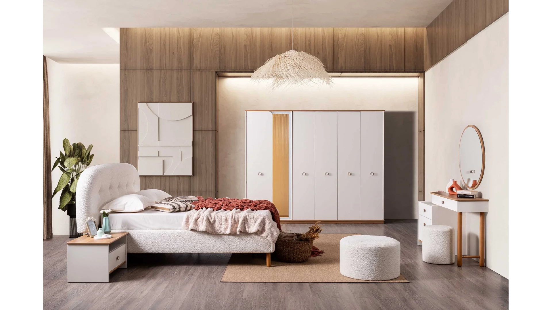 | Takım İçeriği | 1 adet Dolap,1 adet Karyola,1 adet Aynalı Şifonyer,2 adet Komodin |
