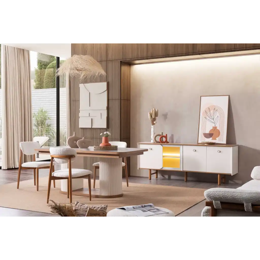 Occo Home Mobilya tarafından tasarlanan Inegol Mobilyası Virjin Yemek Odası, modern ve şık tasarımı ile yaşam alanlarınıza zarif bir hava katıyor.