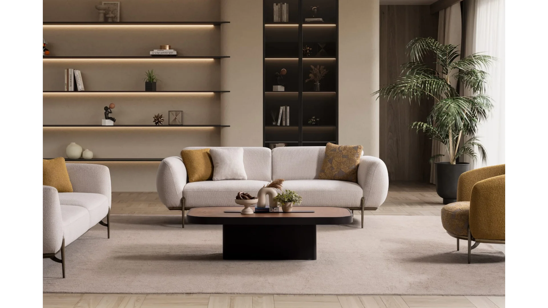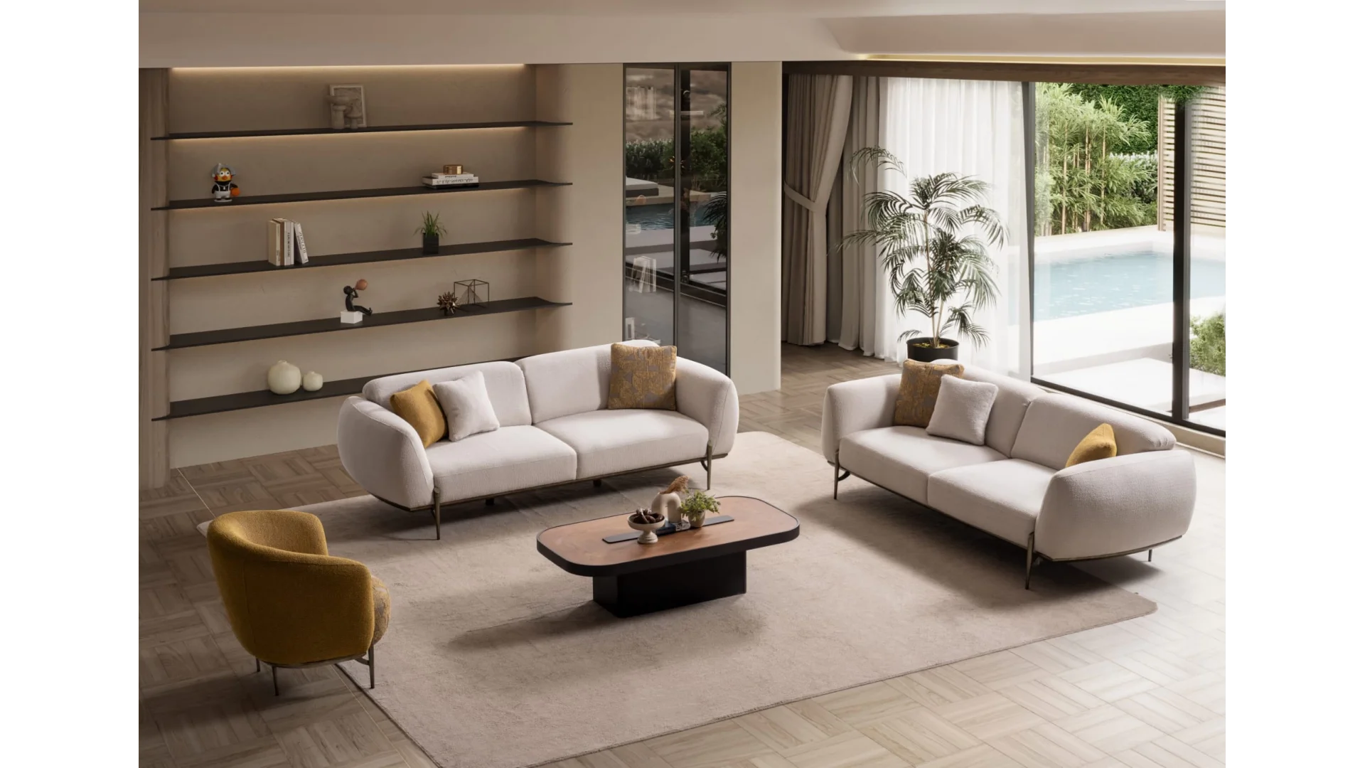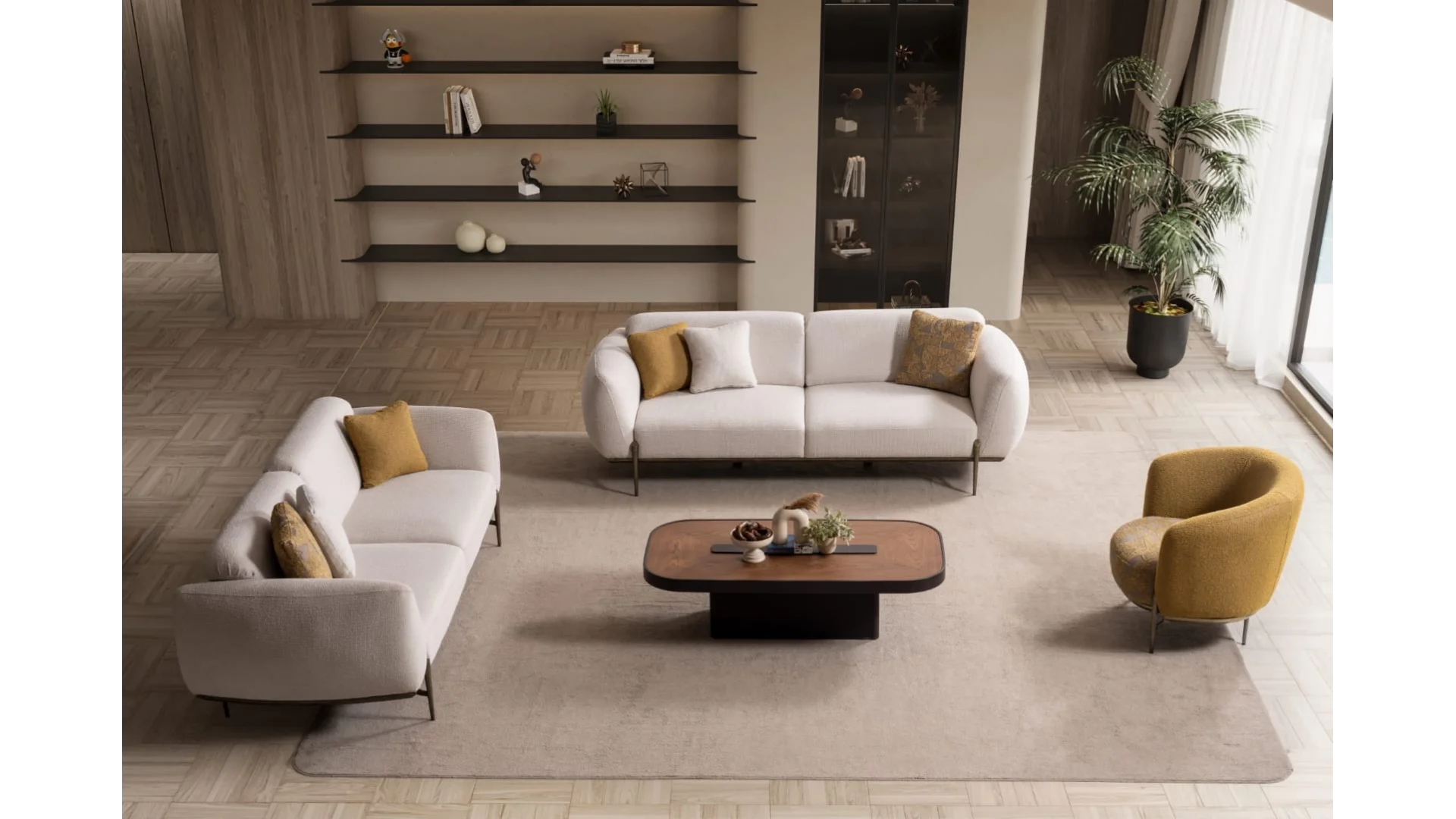 - İki Adet Üçlü ve tekli koltuk seçenekleri ile farklı ihtiyaçlara uygun olarak tercih edilebilir.