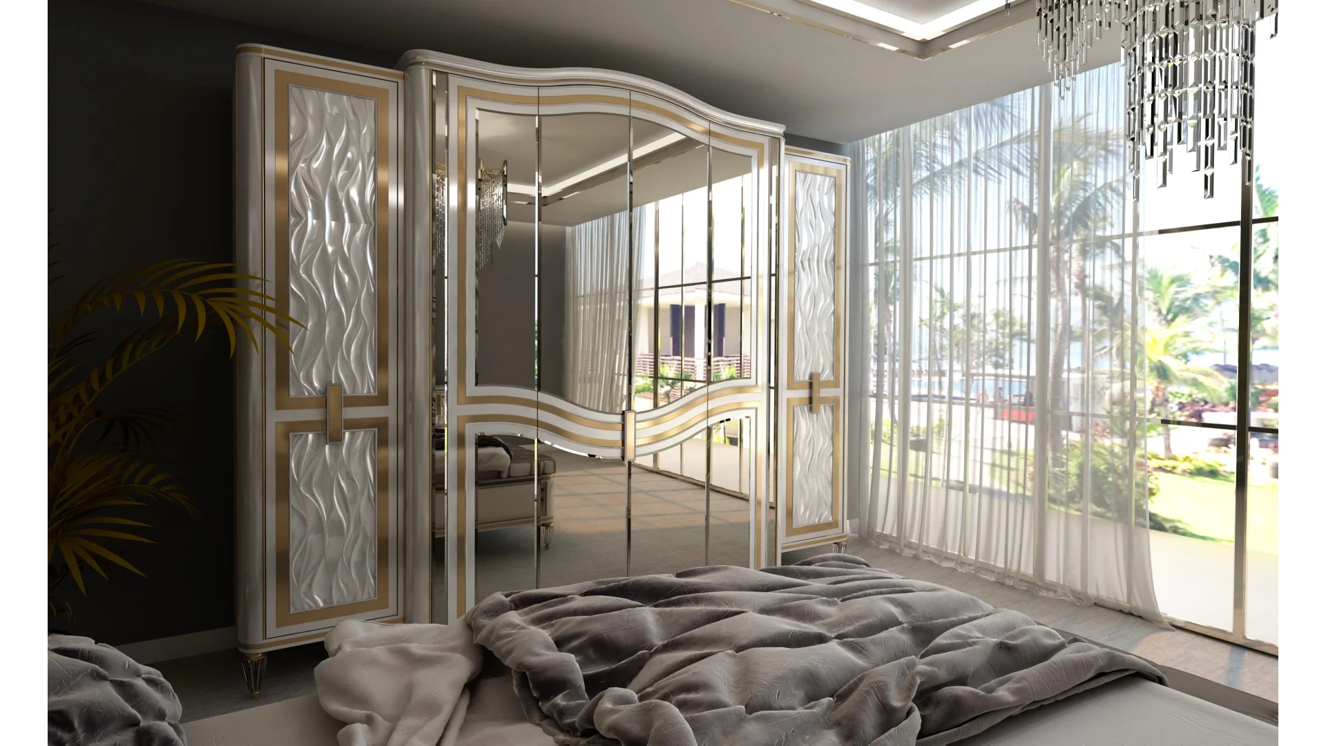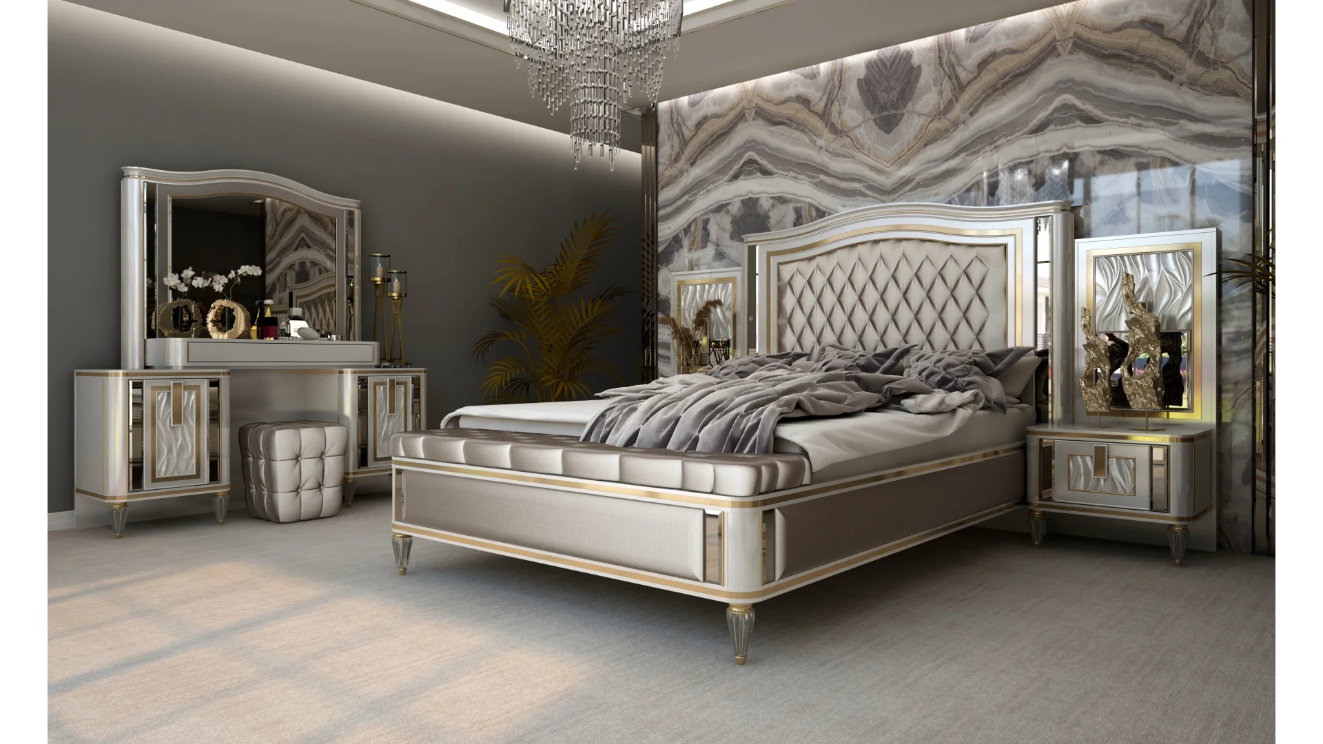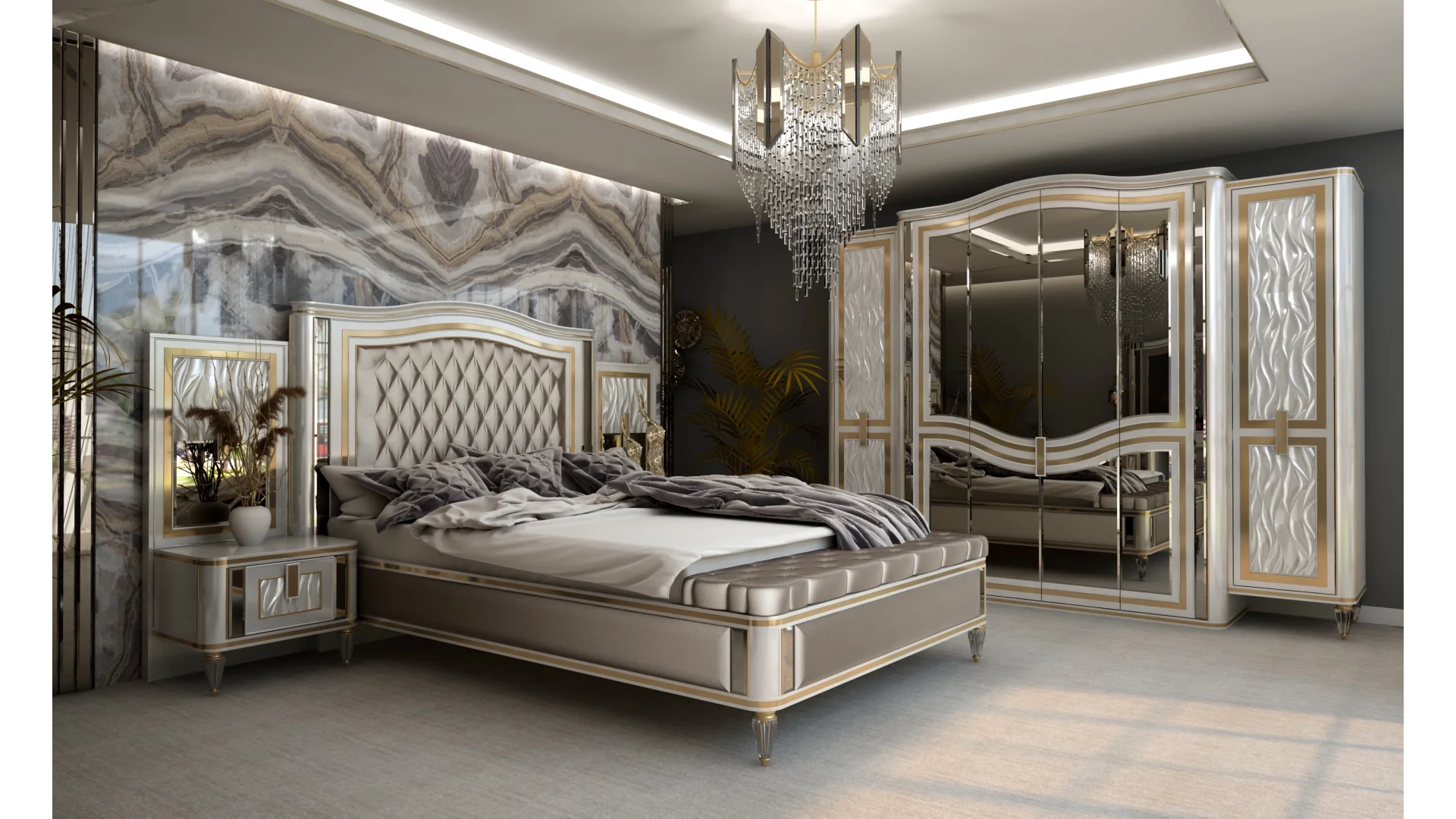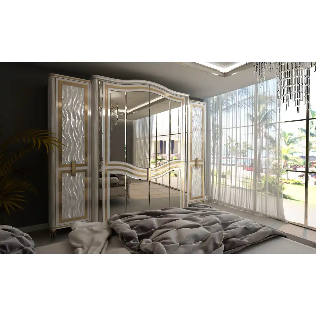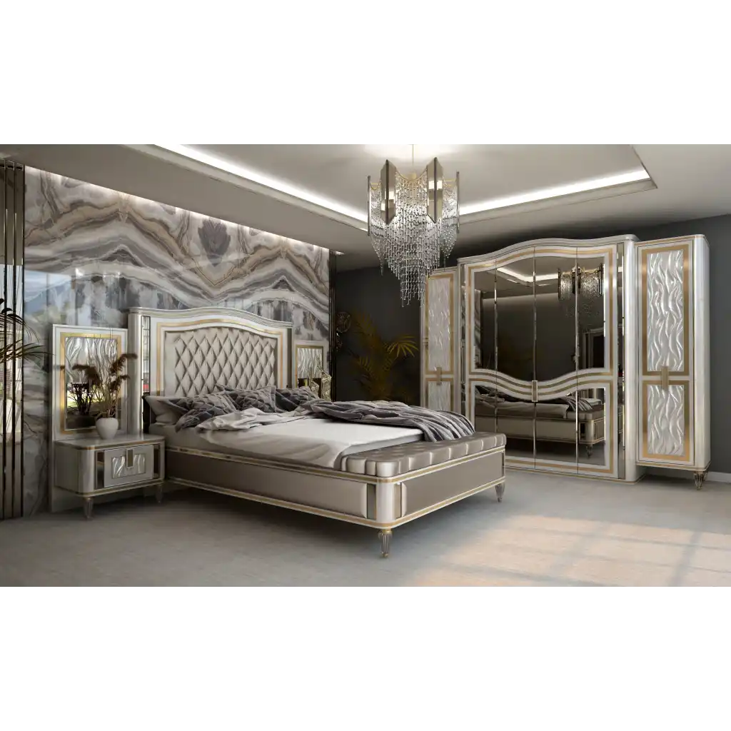 | Takım İçeriği | 1 Adet 6 kapılı Dolap,1 adet Karyola,1 adet Aynalı Şifonyer,2 adet Komodin,1 Adet Bench |