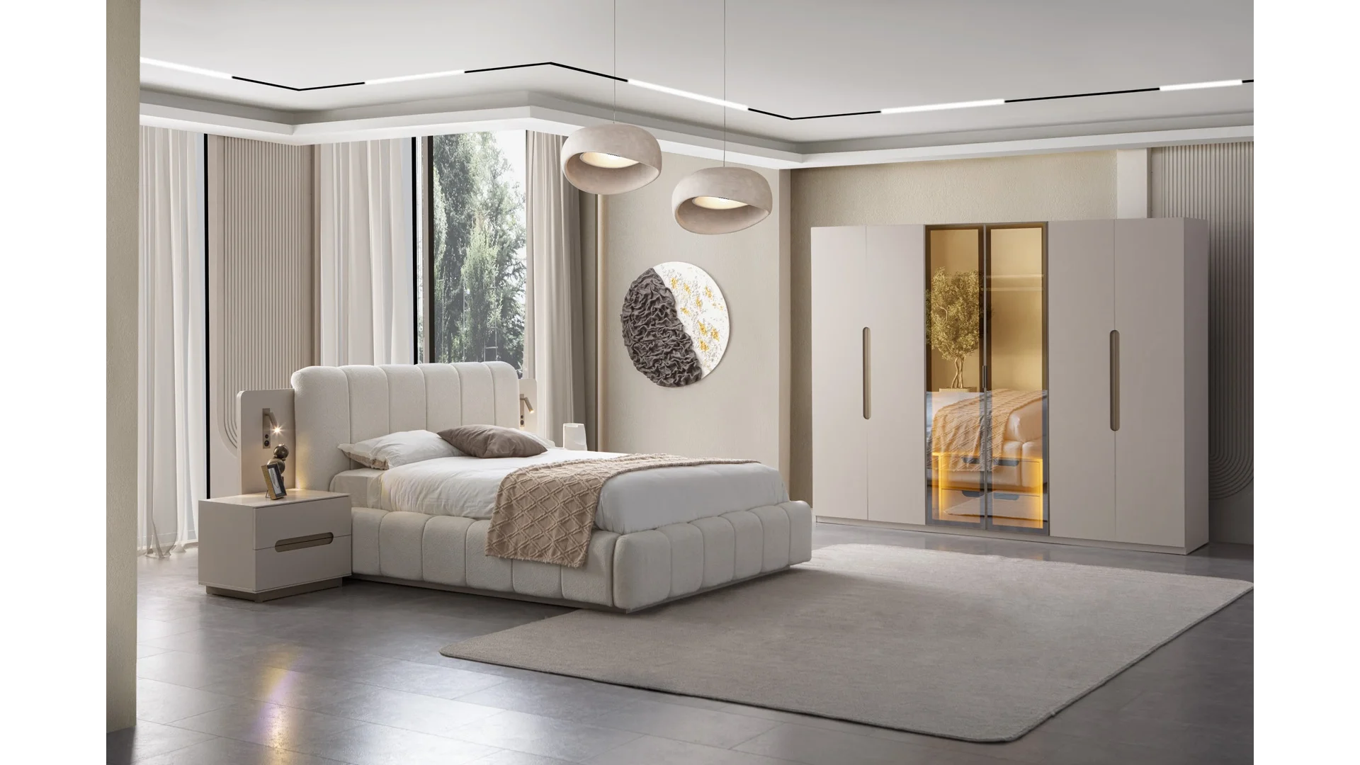 | Takım İçeriği | 1 adet Dolap,1 adet Karyola,1 adet Aynalı Şifonyer,2 adet Komodin |