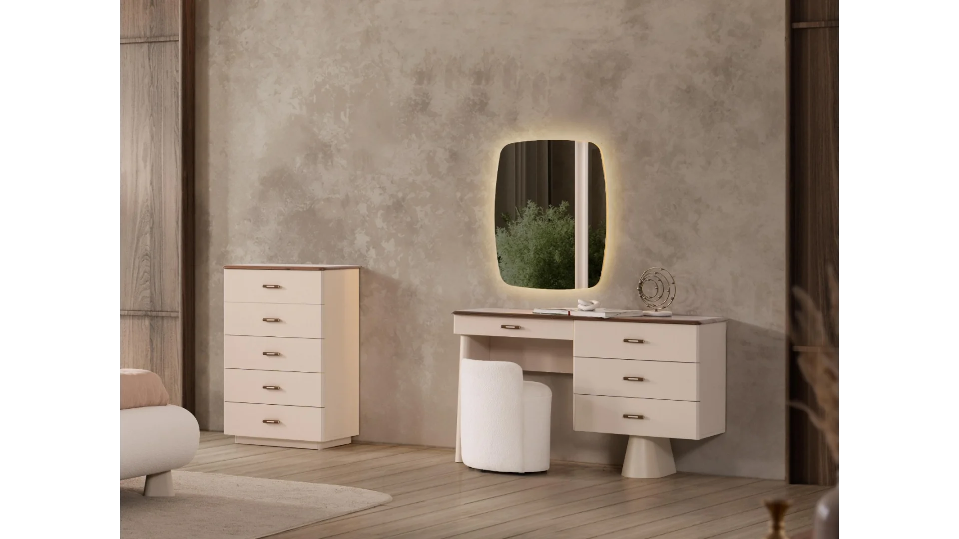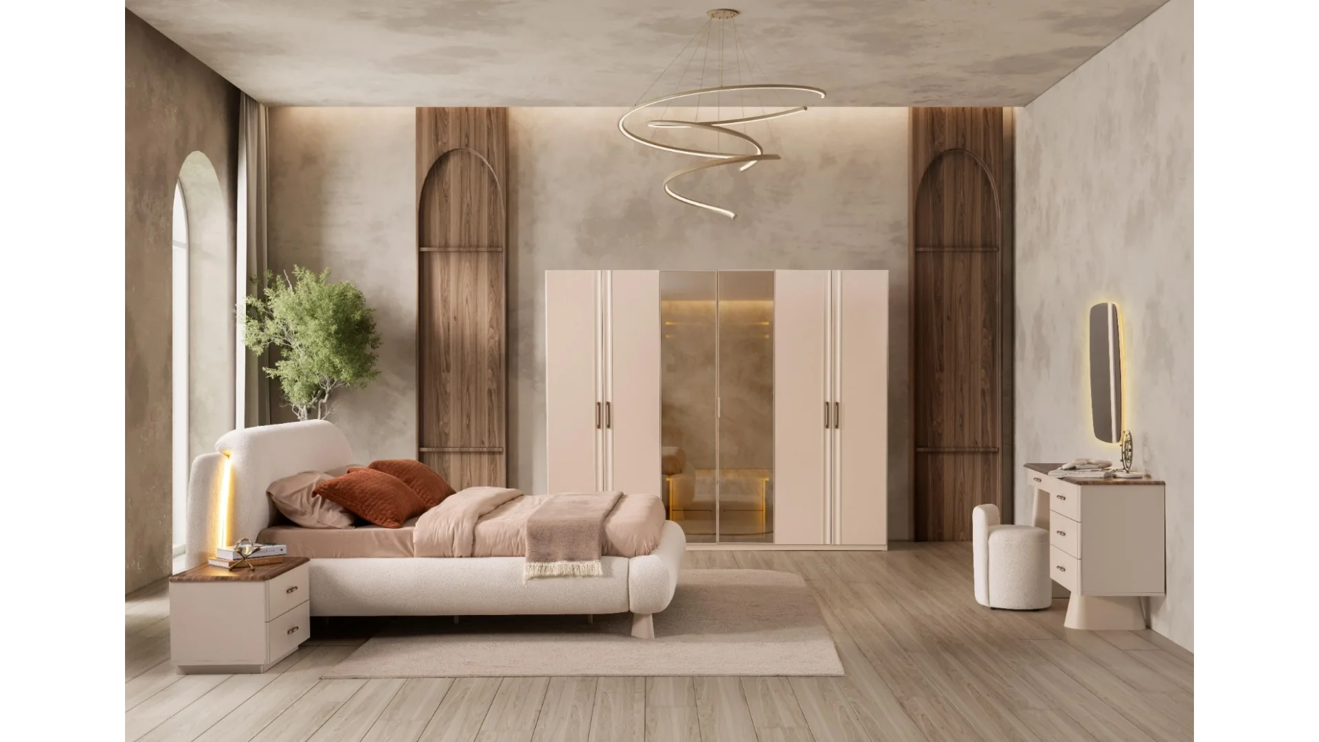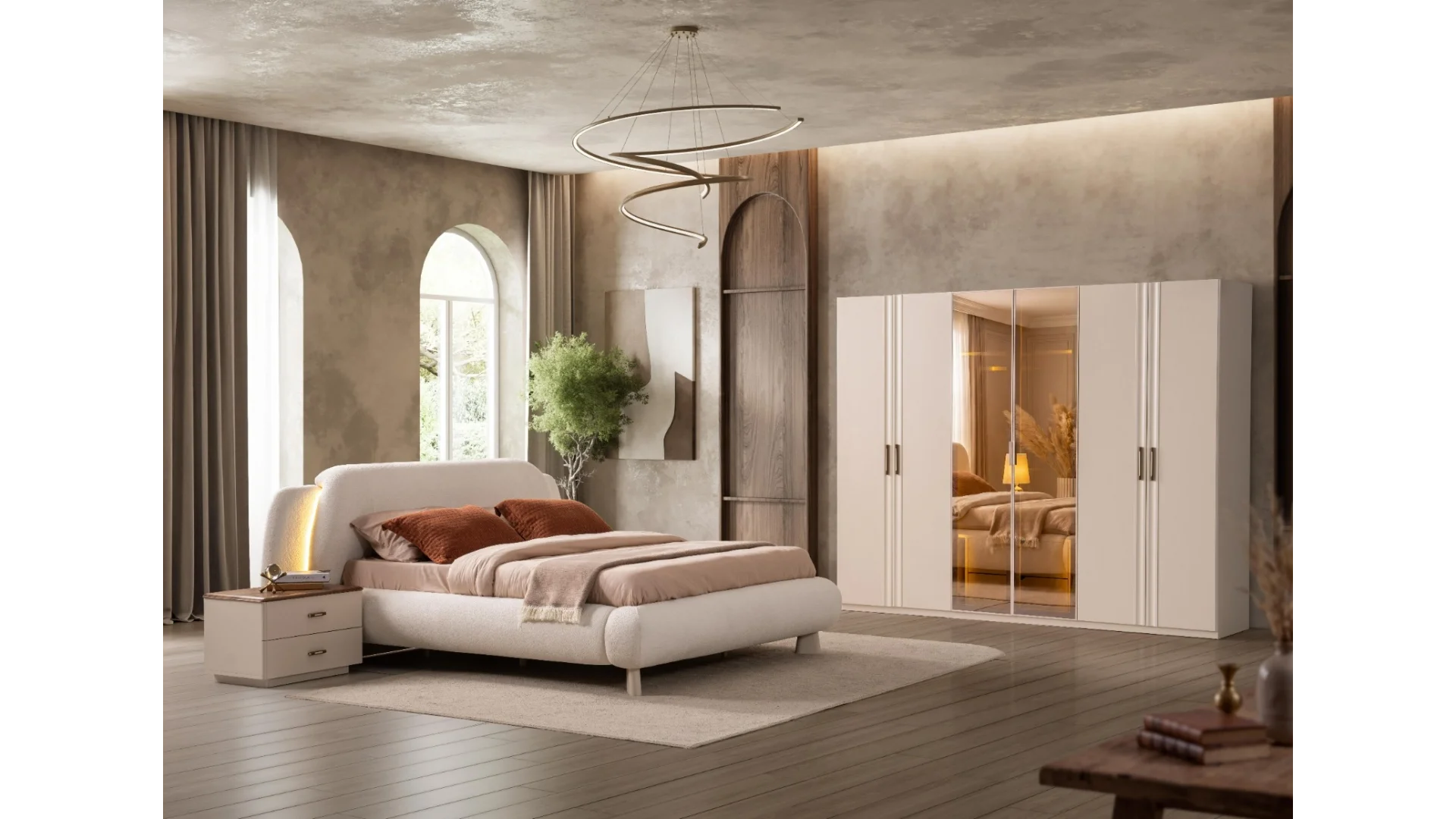 | Takım İçeriği | 1 adet Dolap,1 adet Karyola,1 adet Aynalı Şifonyer,2 adet Komodin |