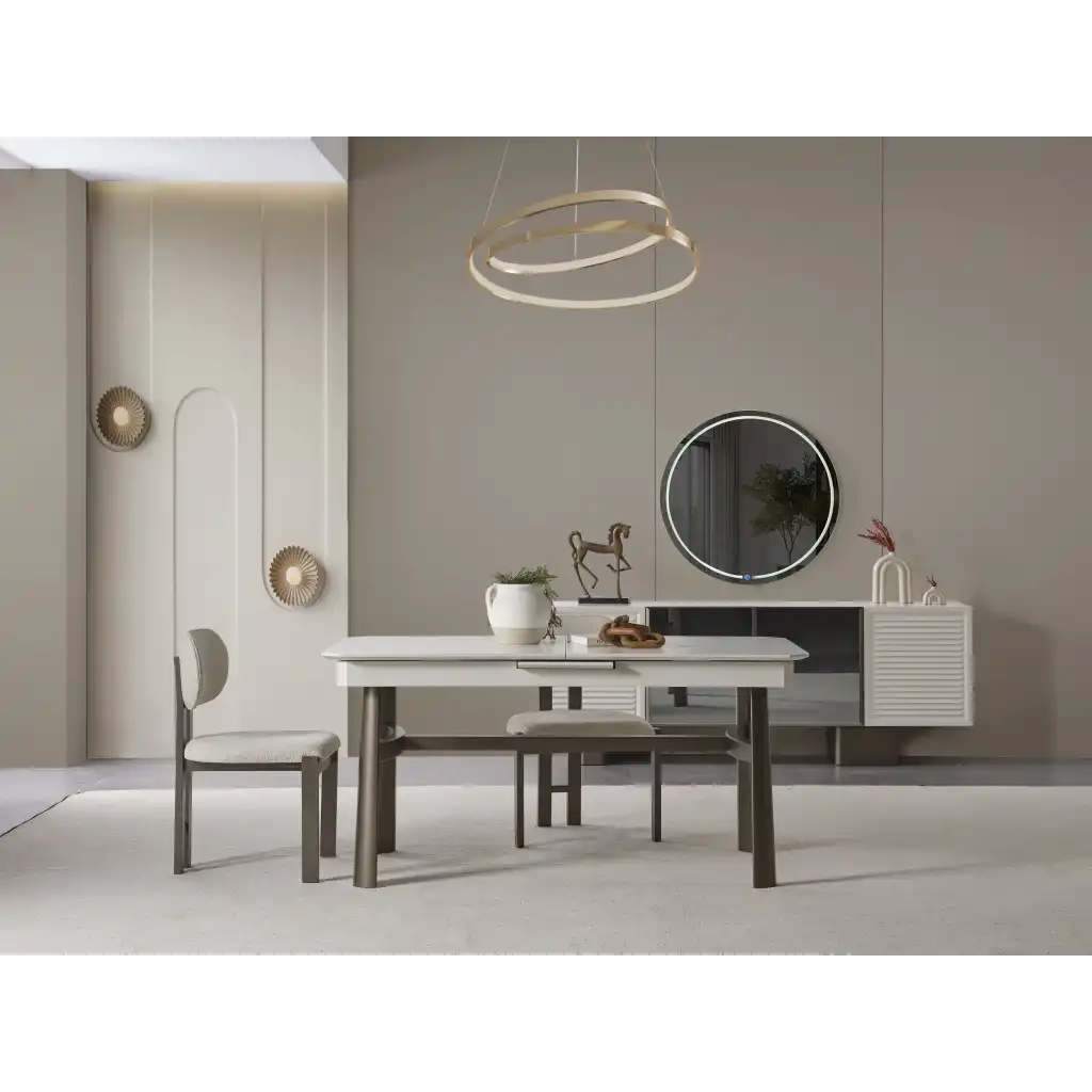 - Geniş oturma alanı ve ergonomik yapısıyla konforlu bir yemek keyfi sunar. - Konsol, sehpa gibi ek parçalarla tamamlayabileceğiniz şık bir yemek odası takımıdır.