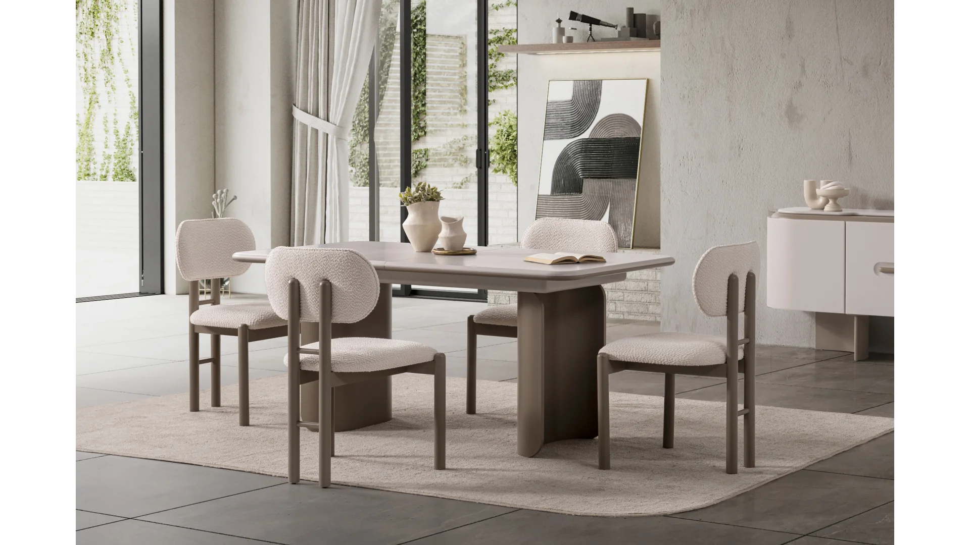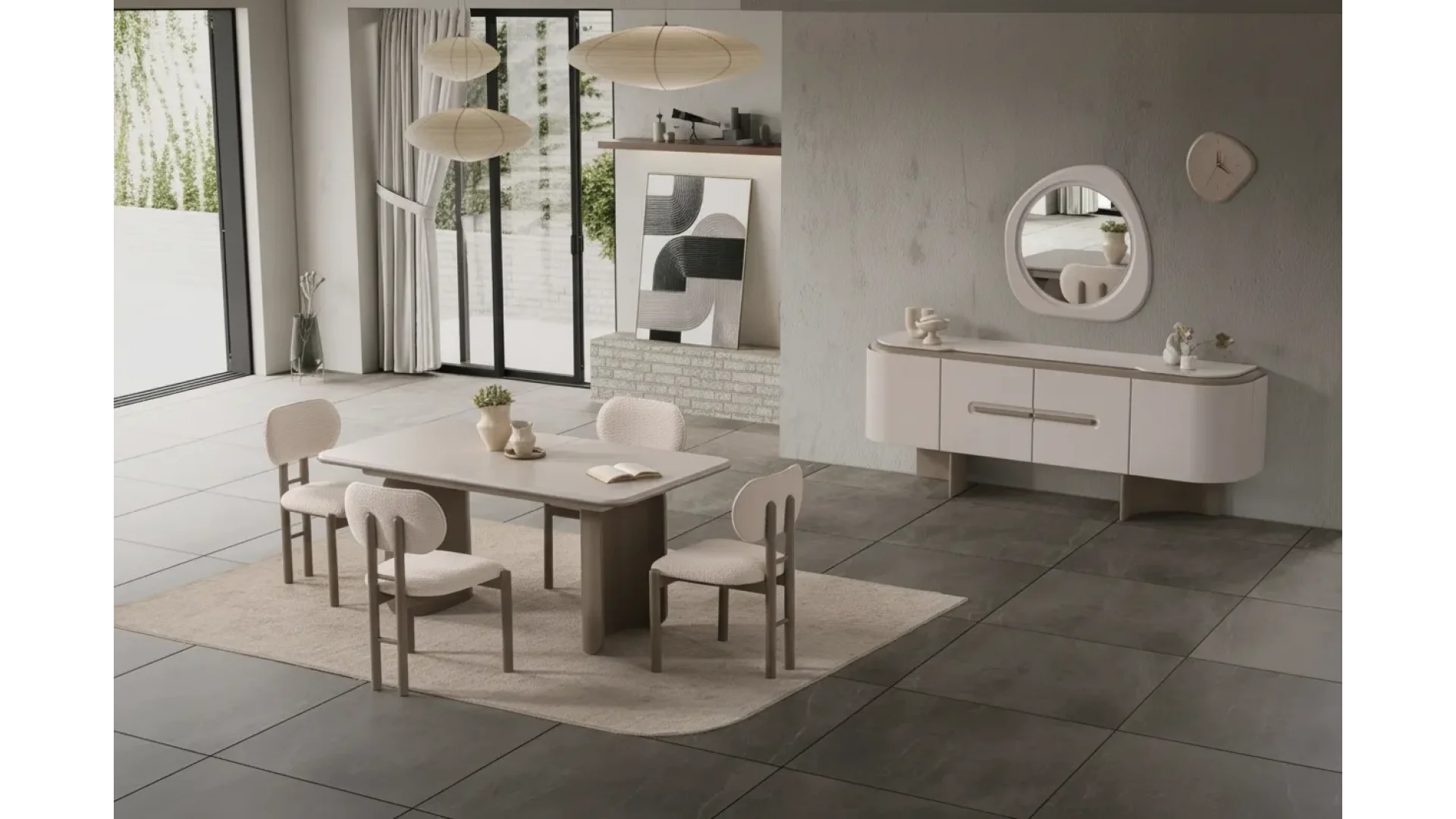 - Yemek odası takımı içerisinde masa, sandalye Konsol ve Konsol Aynası bulunmaktadır.