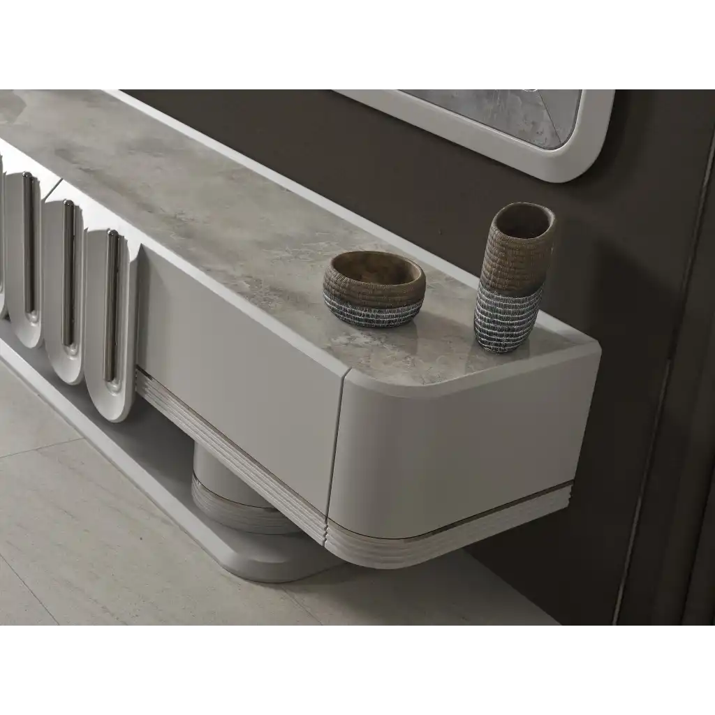 - İnegöl Mobilya Prada Sis Grisi Tv Ünitesi, yüksek kaliteli malzemelerden üretilmiştir ve uzun ömürlüdür.